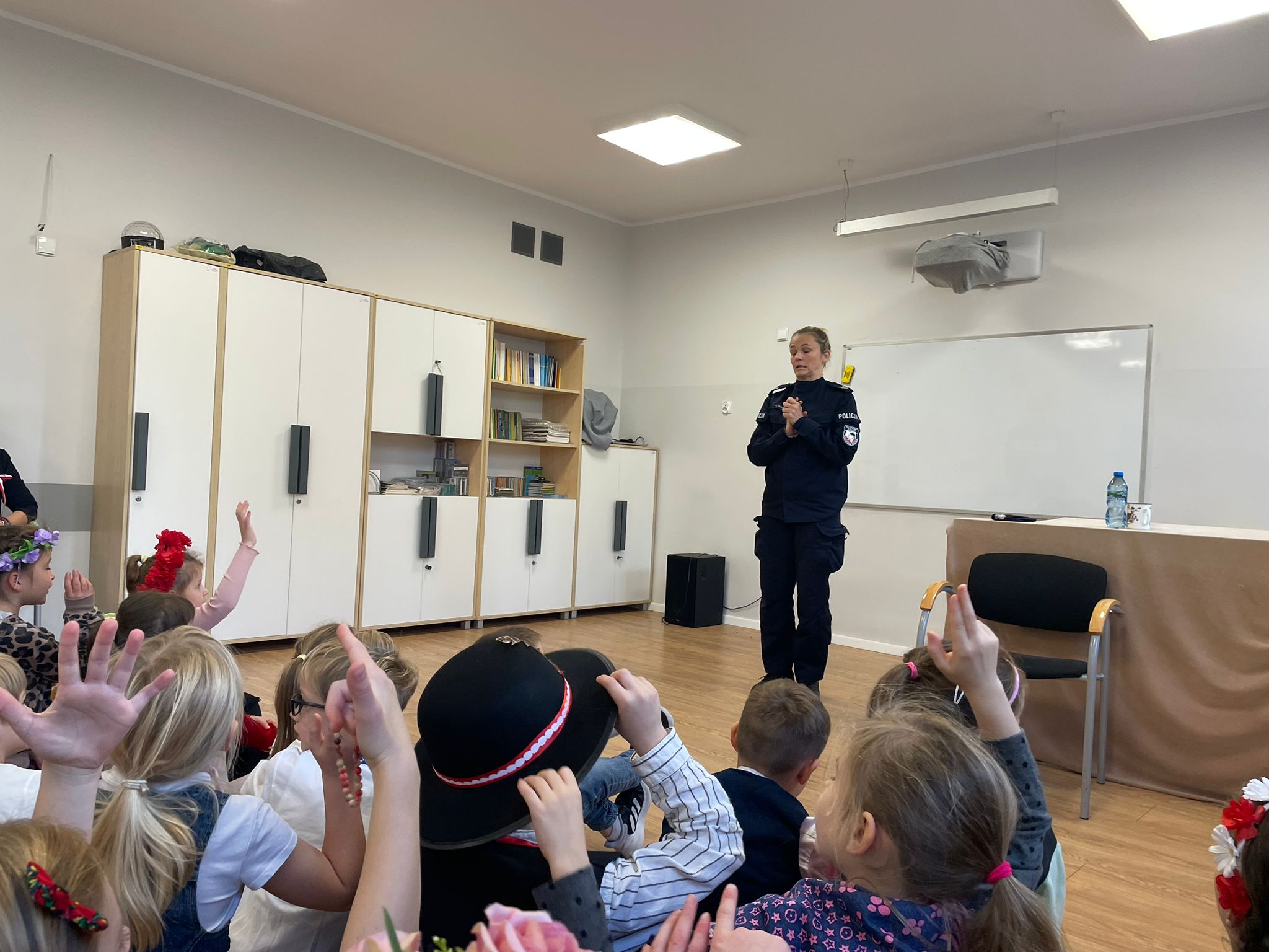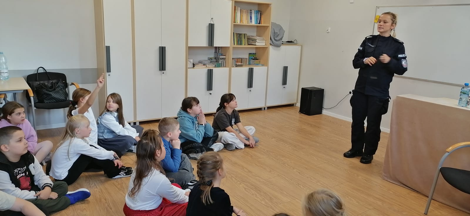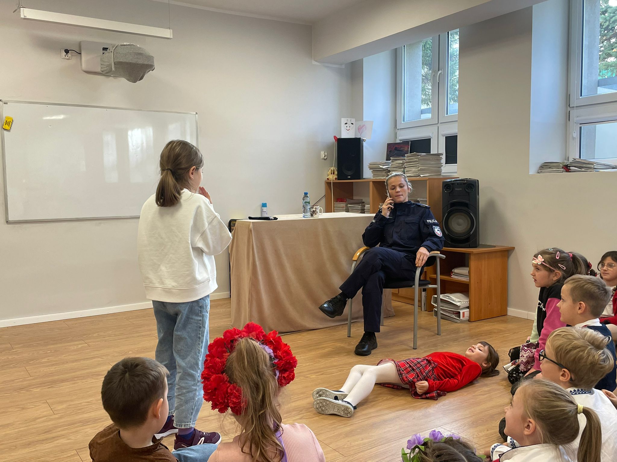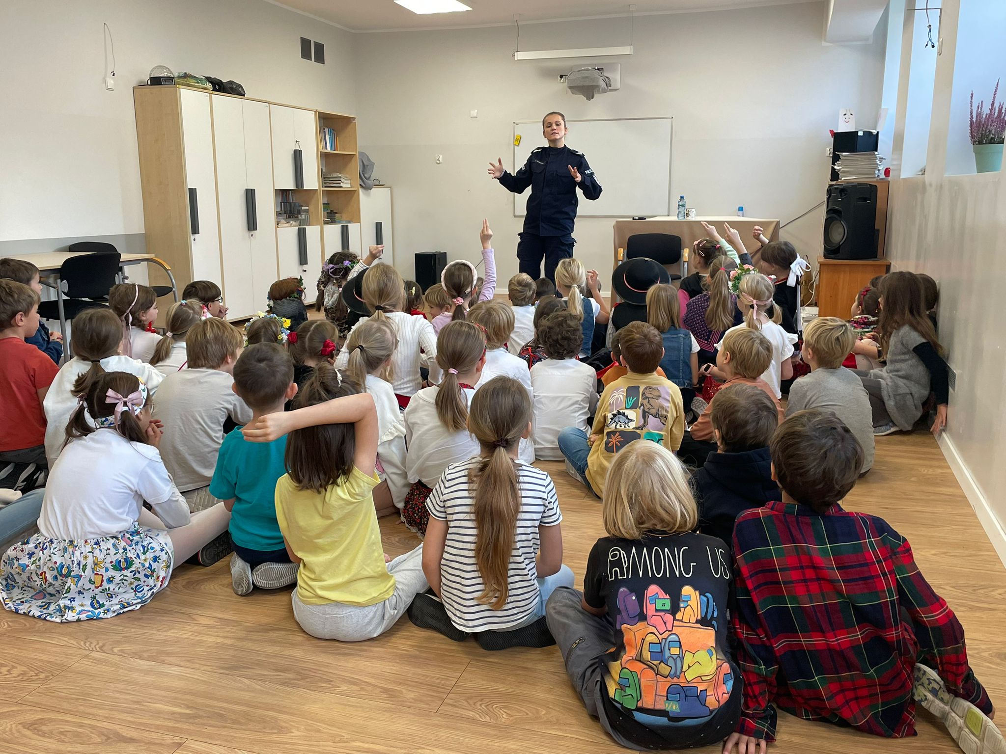 Wczoraj uczniowie kilku klas młodszych spotkali się z funkcjonariuszką Komendy Miejskiej Policji w Gdyni. Rozmowa dotyczyła ważnych tematów: przemocy rówieśniczej, hejtu, cyberprzemocy, kontaktów z nieznajomymi oraz zasad telefonicznego zgłaszania wypadku.