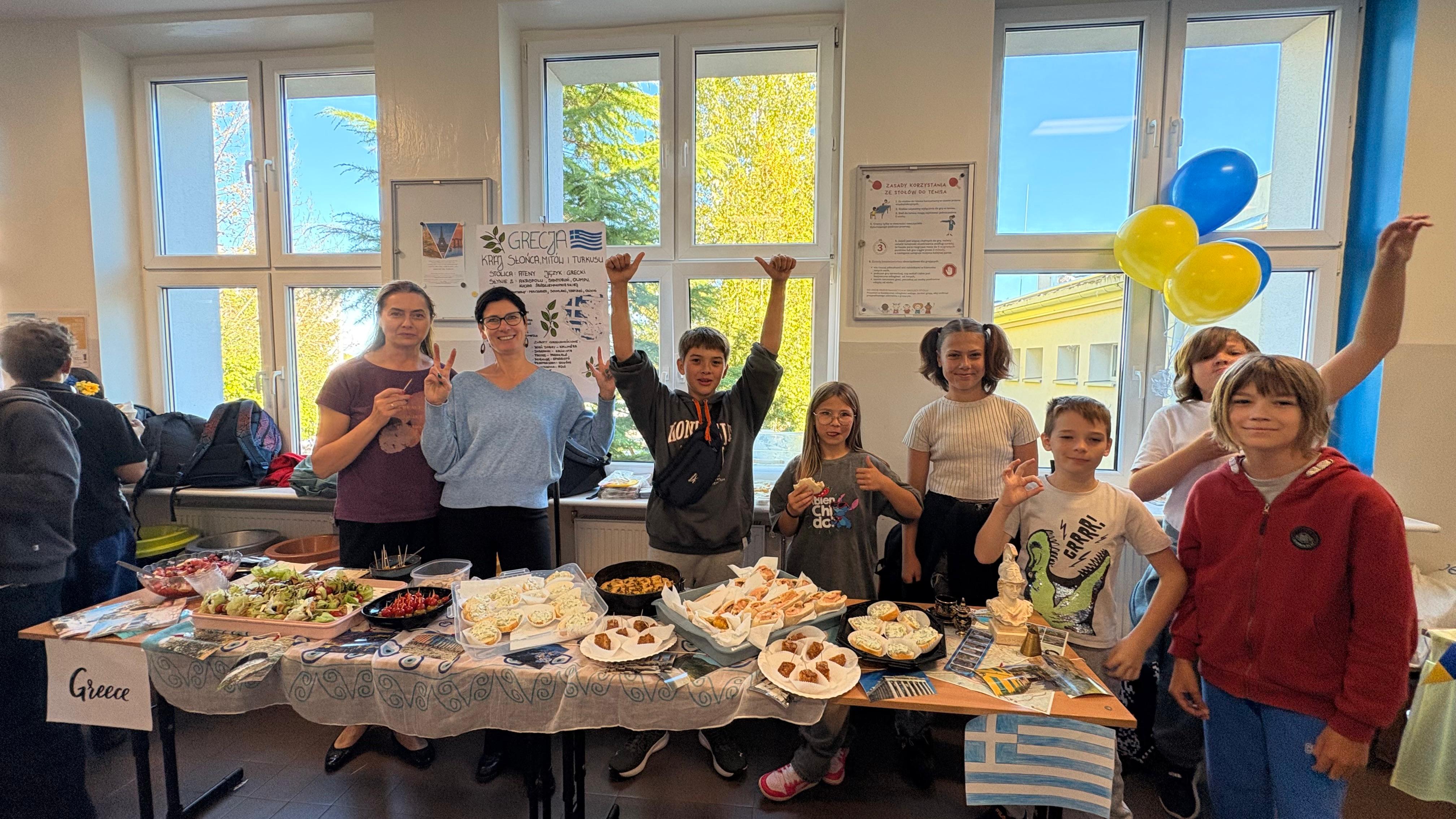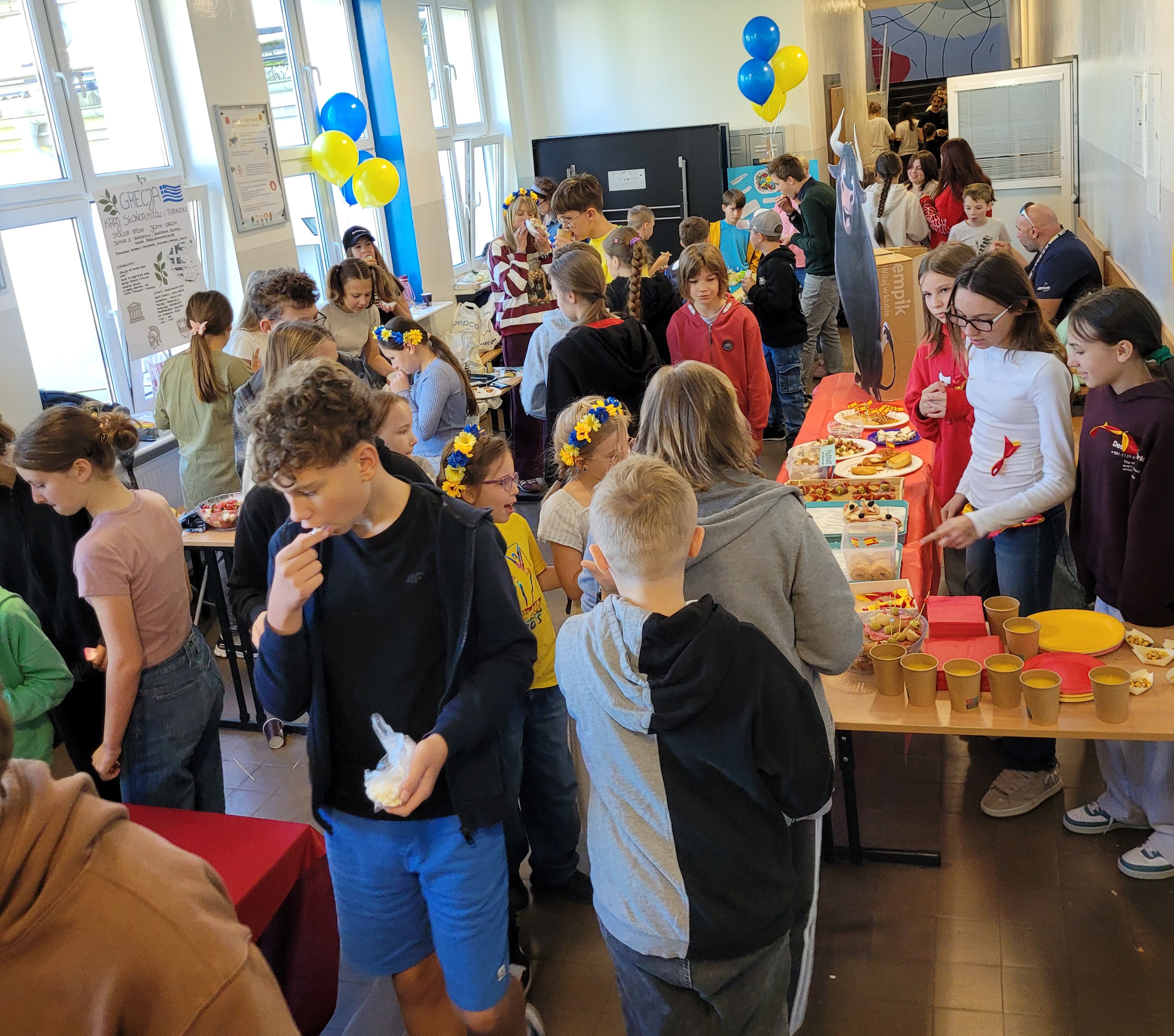 Dziś nasza szkoła zamieniła się w prawdziwą podróż przez 3 kontynenty – Europę, Azję i Amerykę Południową! Każda klasa wylosowała kraj i przygotowała jego prezentację – były informacje, muzyka i przede wszystkim… stoły pełne niezwykłych potraw.