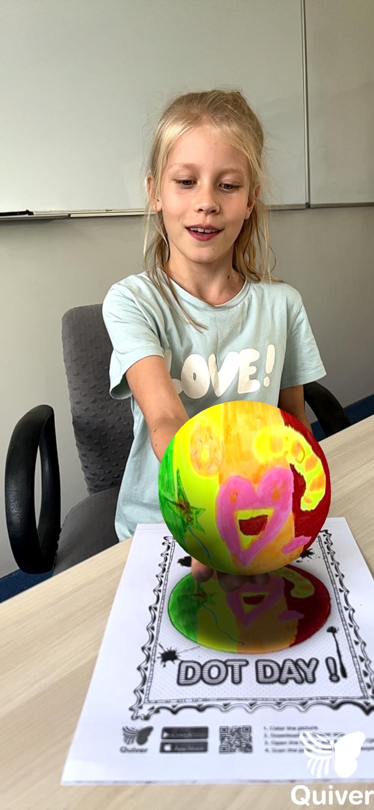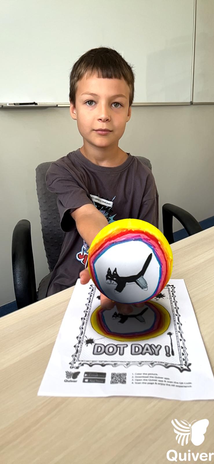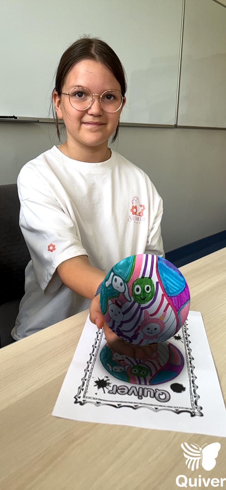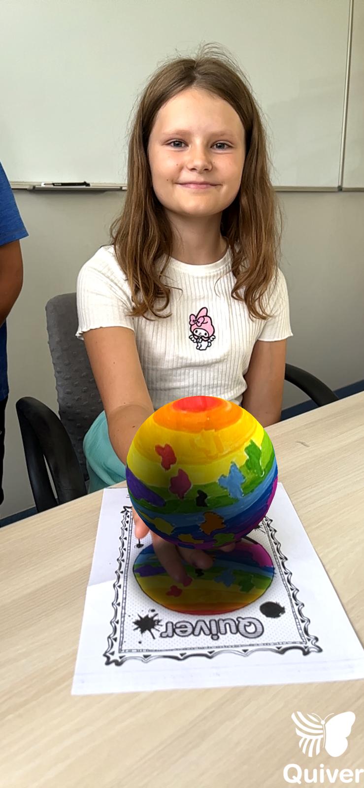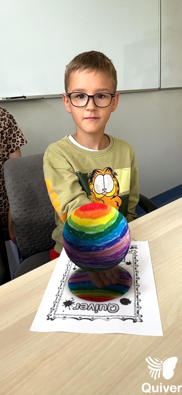 Uczniowie najpierw zaprojektowali własne, kolorowe kropki, a potem – dzięki aplikacji Quiver – zobaczyli je w wersji 3D.