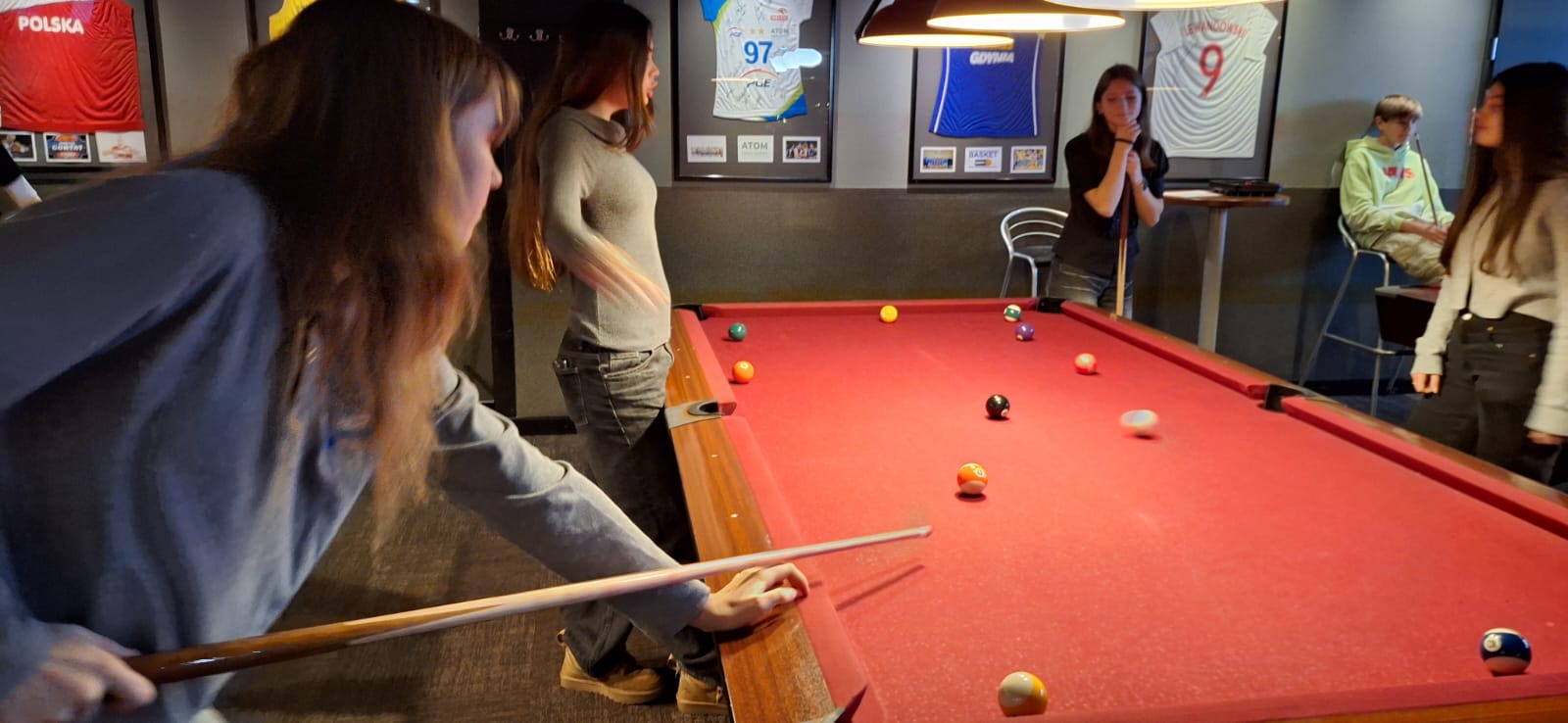 VIIIa wskoczyła na lód i kręciła piruety (czasem bardziej kontrolowane, czasem… powiedzmy: kreatywne. VIIIb wybrała elegancki chill przy bilardzie — skupienie, precyzja, taktyka… i odrobina rywalizacji, bo jakże inaczej.