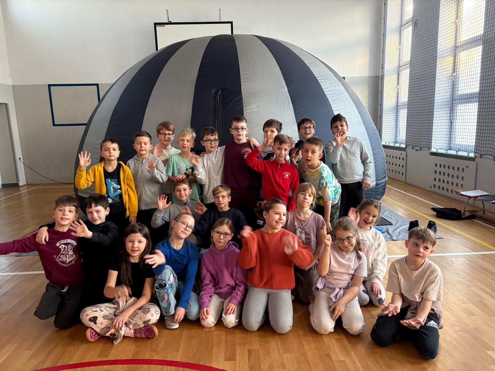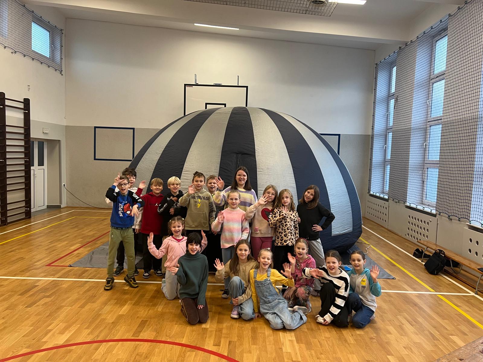 Ostatnio wpadło do nas wyjątkowe mobilne kino 360°, a wraz z nim… cały wszechświat możliwości. Uczniowie dosłownie znaleźli się w środku projekcji — kopuła otaczała ich obrazem z każdej strony.
