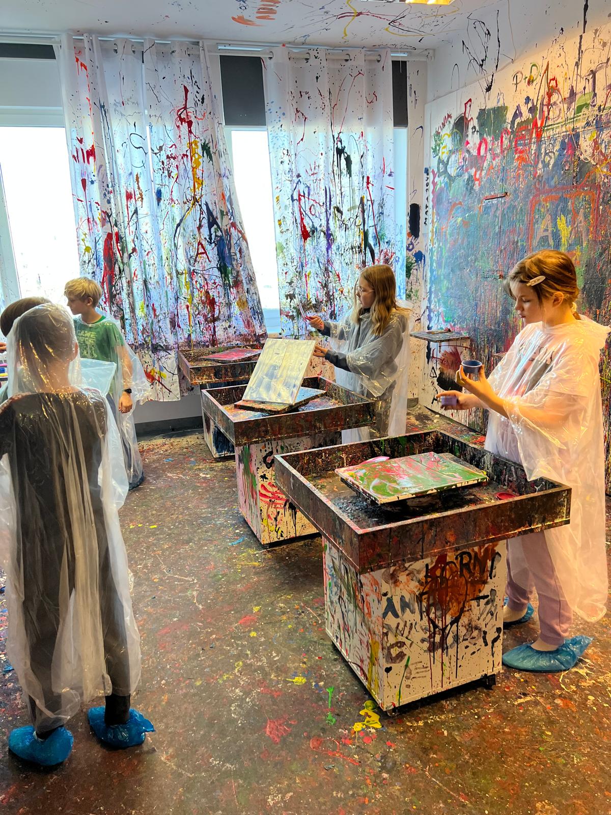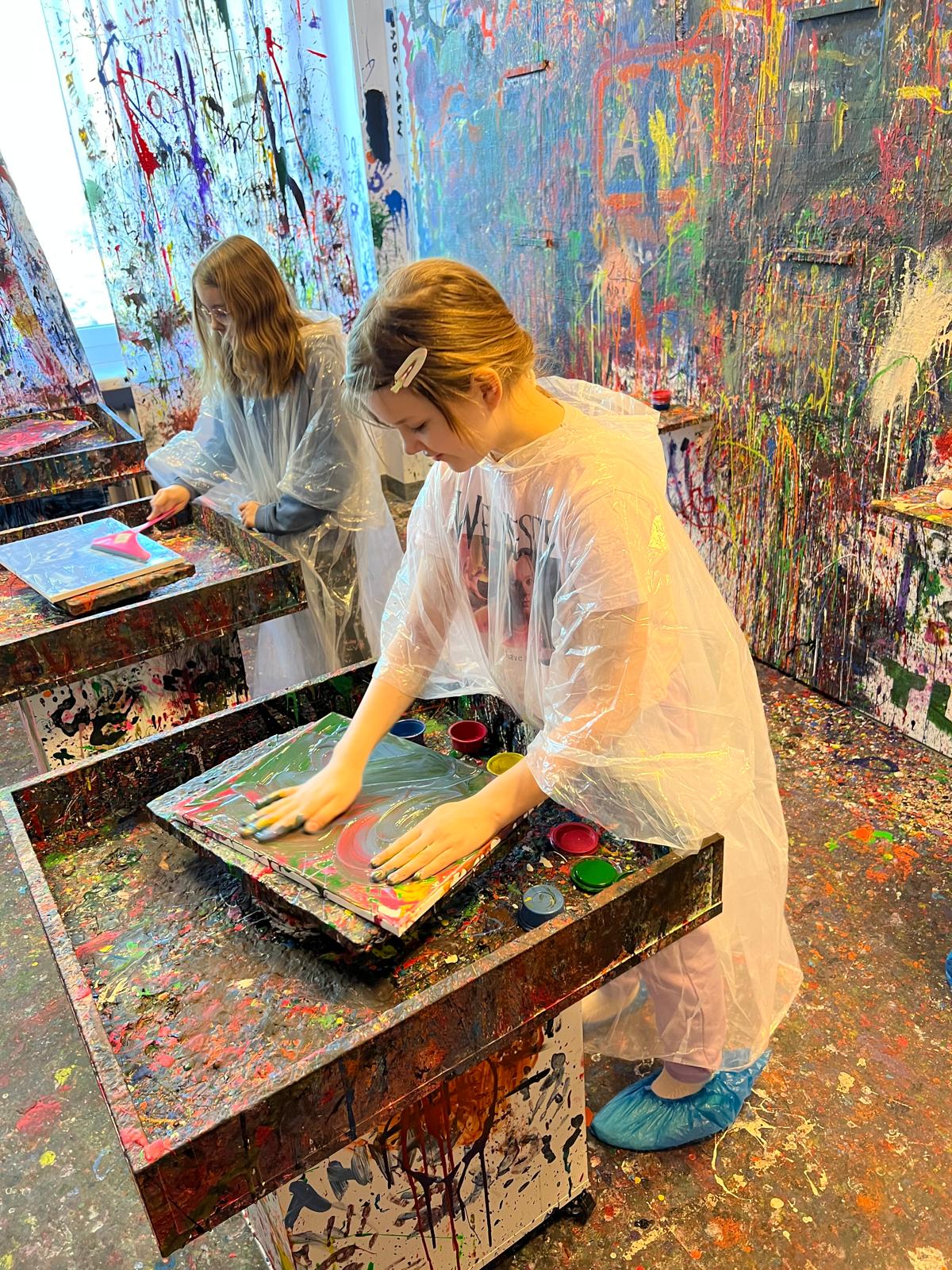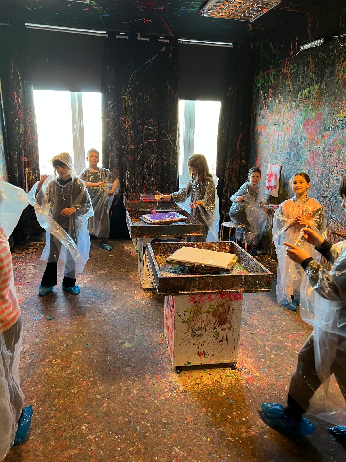 Podczas warsztatów uczniowie zanurzyli się w świecie barw, eksperymentów i kreatywnego szaleństwa. Było chlapanie, mieszanie, odkrywanie i przede wszystkim… ogrom radości z tworzenia bez ograniczeń!