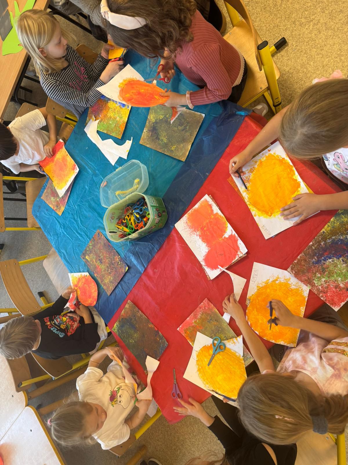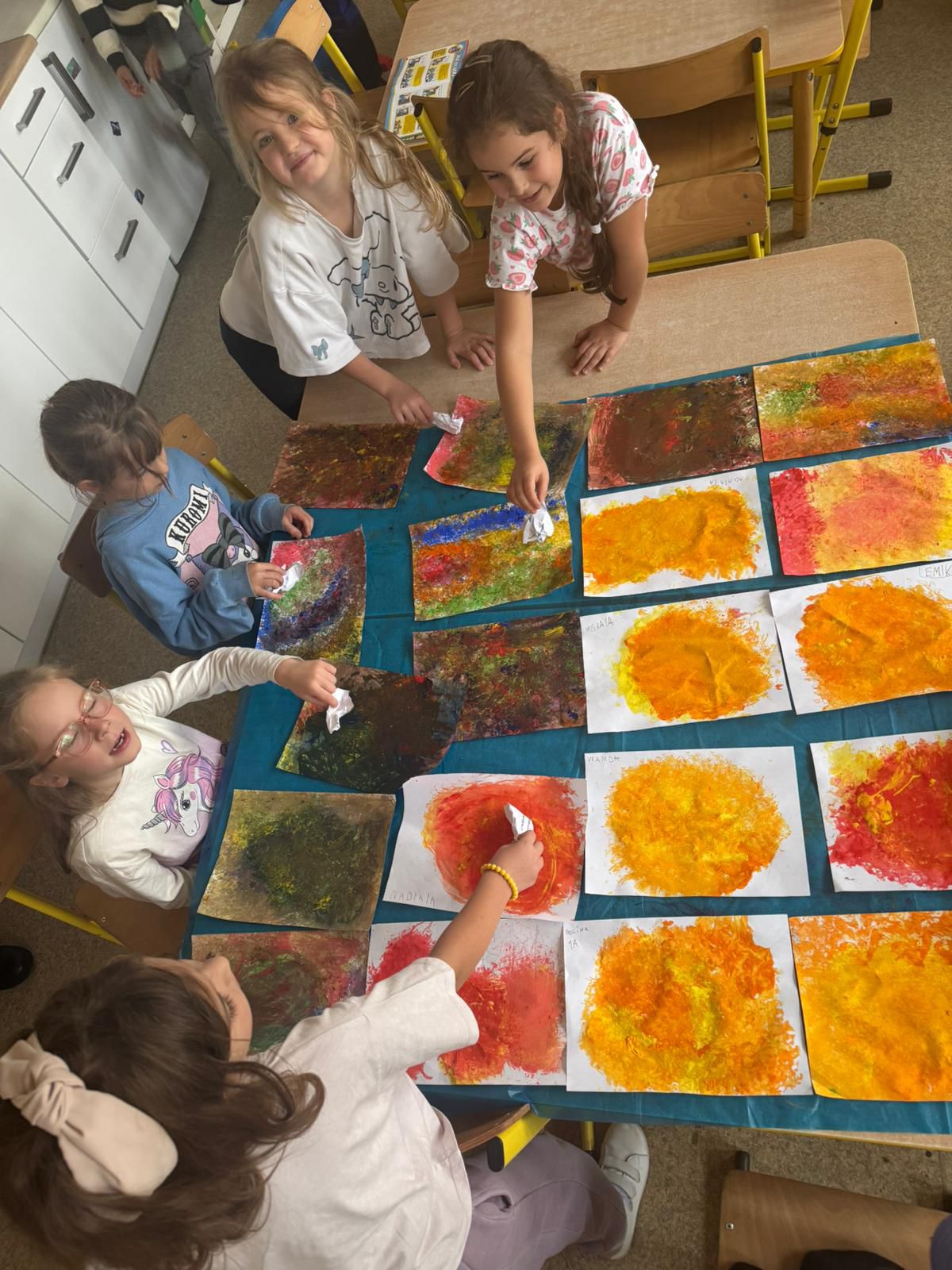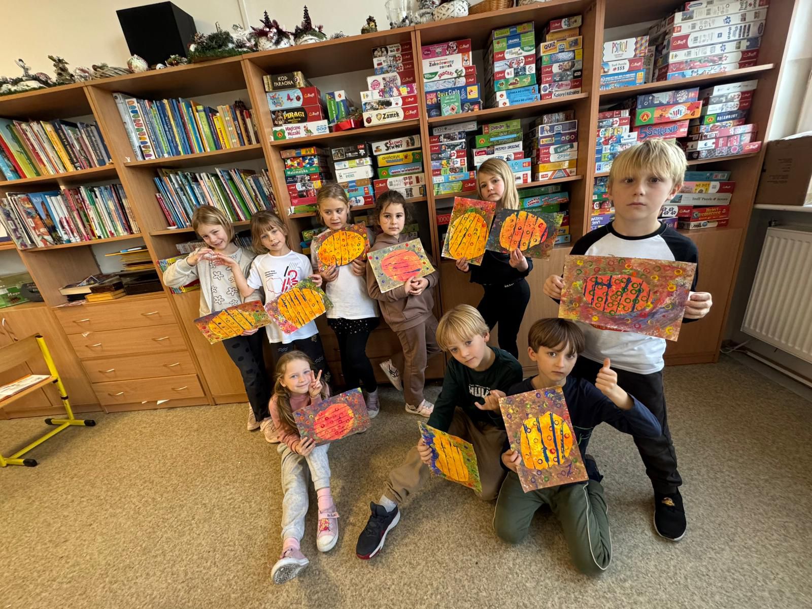 Dzieci ze świetlicy znów zachwyciły! W listopadowej edycji projektu „Kreatywne prace” stworzyły barwne kompozycje inspirowane rytmem pól oraz jesiennymi zbiorami owoców i warzyw. Kolory, pomysły i jesienny klimat — wszystko tu gra!