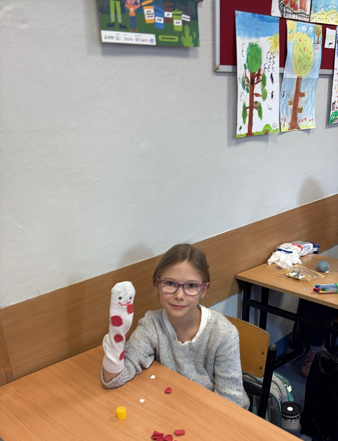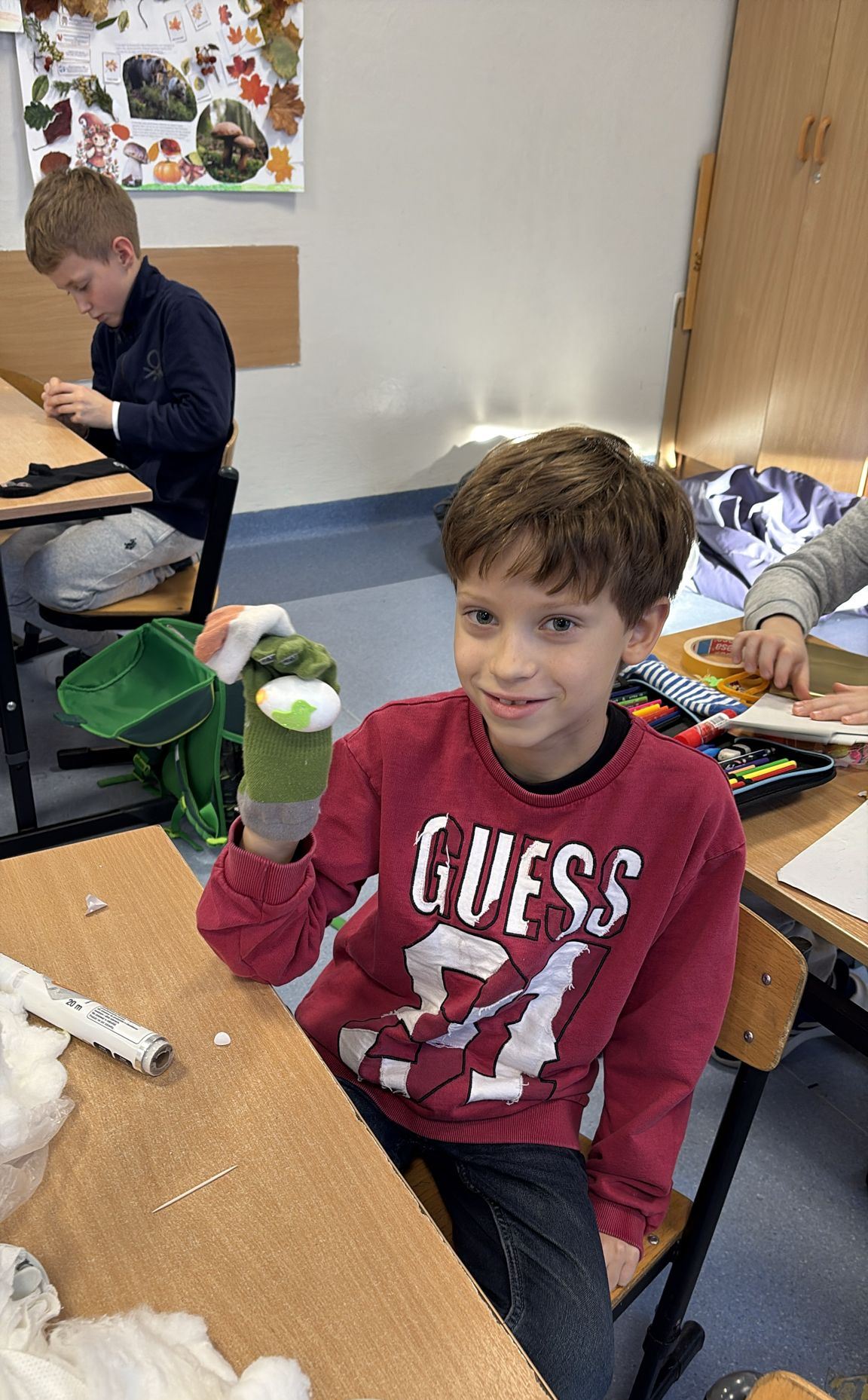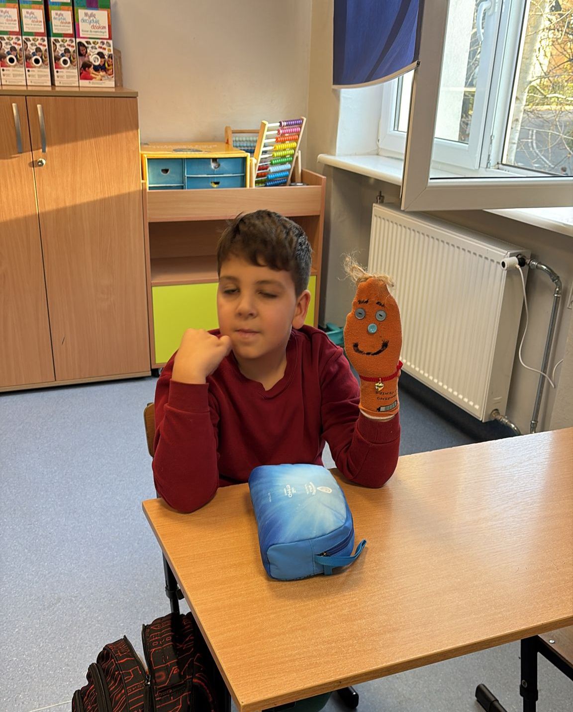 Klasa IIc przeniosła się w świat „Niesamowitych przygód dziesięciu skarpetek” Justyny Bednarek! Zamiast zwykłego omawiania książki – powstały pacynki i kukiełki ze skarpetek, a potem mini-scenki pełne humoru i wyobraźni. Było twórczo, głośno i bardzo skarpetkowo!