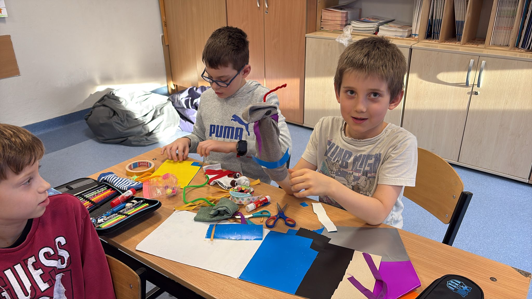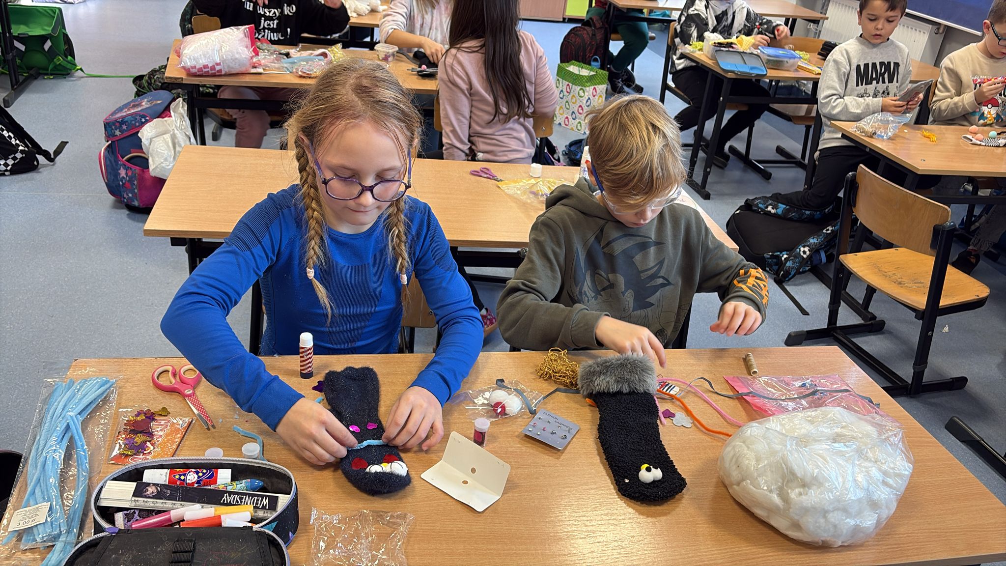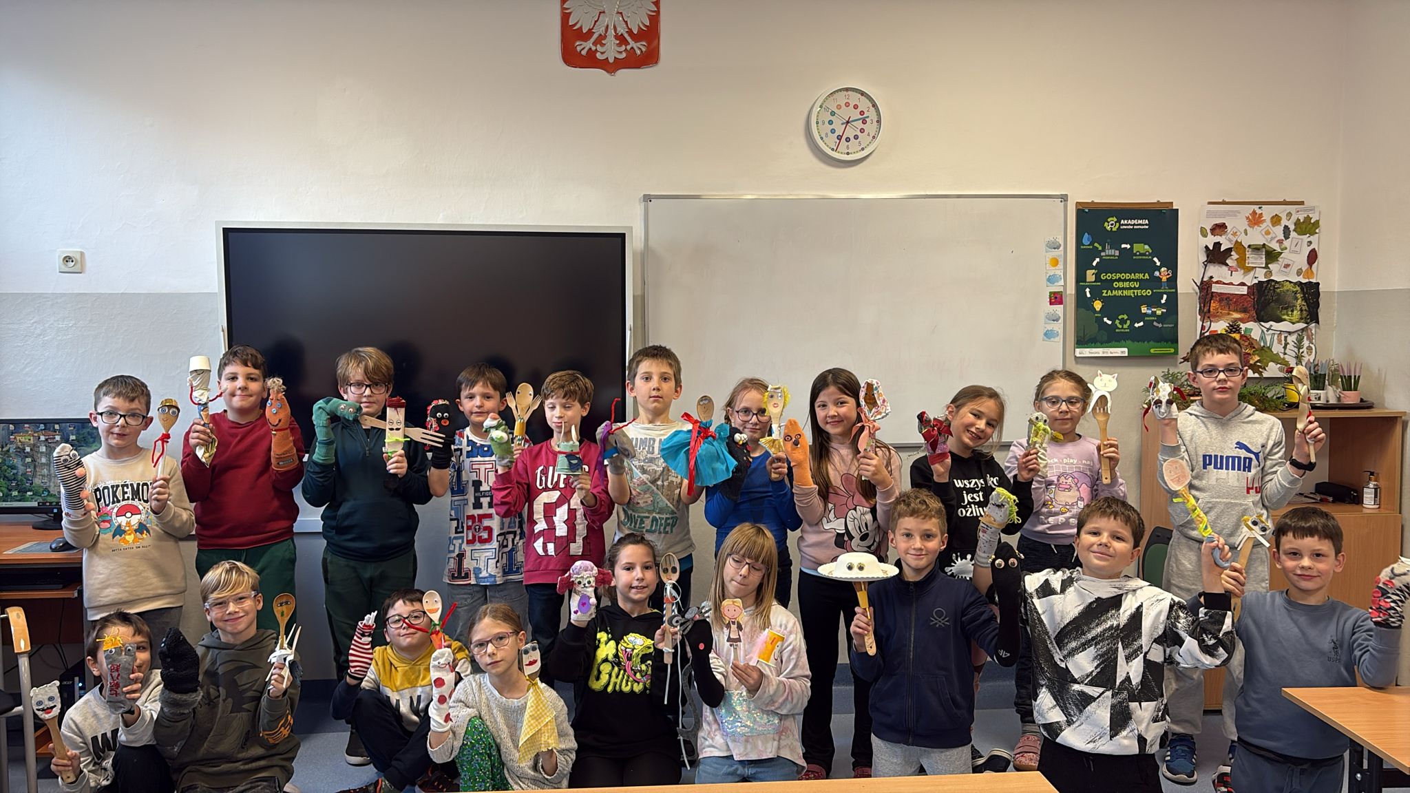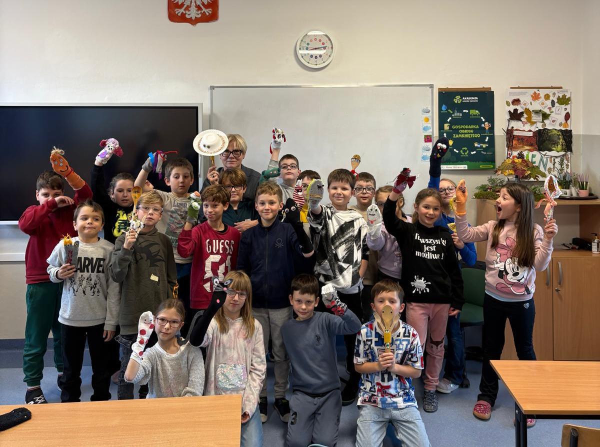 Klasa IIc przeniosła się w świat „Niesamowitych przygód dziesięciu skarpetek” Justyny Bednarek! Zamiast zwykłego omawiania książki – powstały pacynki i kukiełki ze skarpetek, a potem mini-scenki pełne humoru i wyobraźni. Było twórczo, głośno i bardzo skarpetkowo!