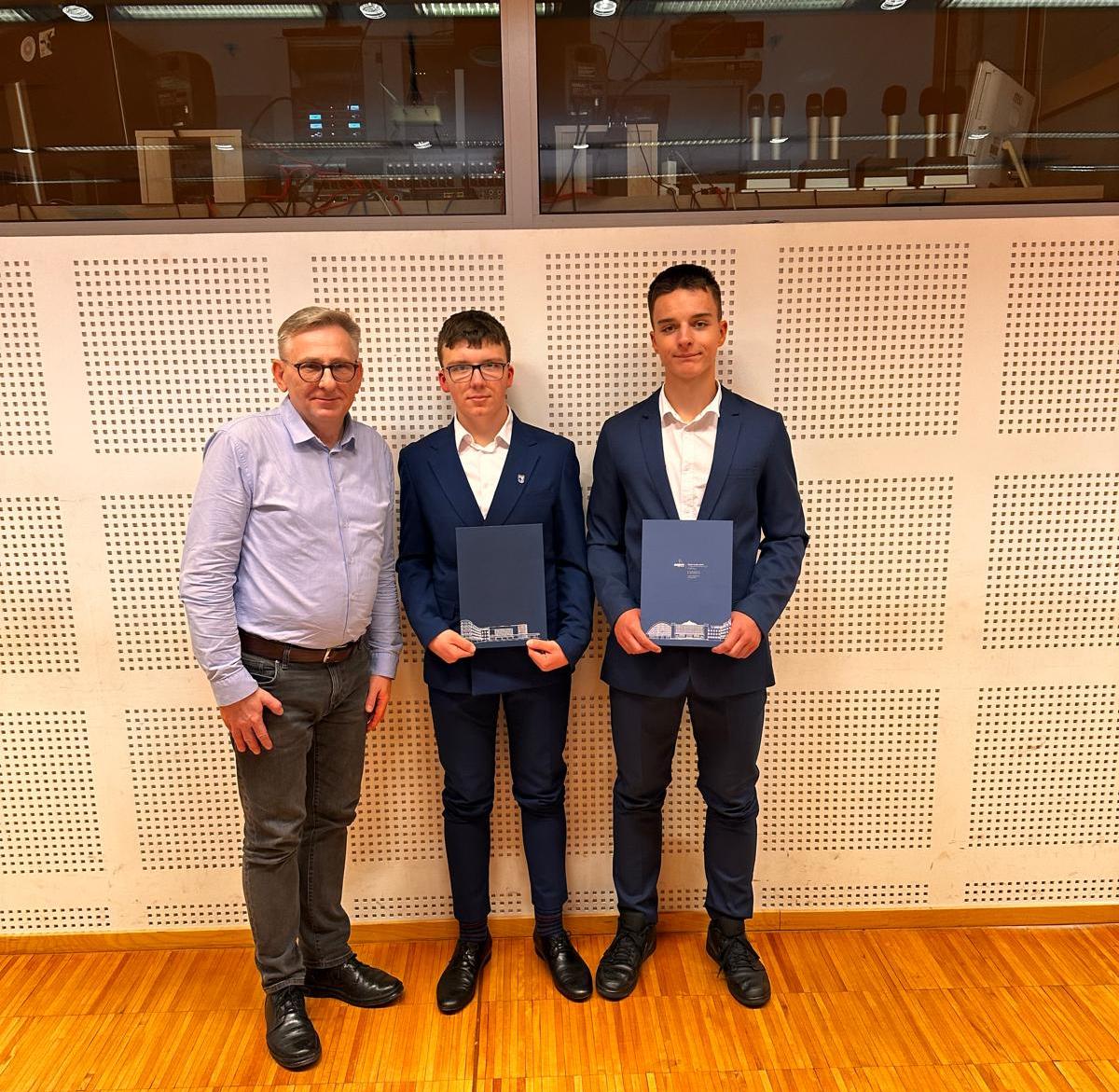Maksymilian i Ryszard – absolwenci ubiegłorocznej klasy VIIIc – odebrali dziś stypendia Prezydenta Miasta Gdyni za osiągnięcia naukowe w minionym roku szkolnym. To wyróżnienie trafia do tych, którzy naprawdę pracują na najwyższych obrotach.