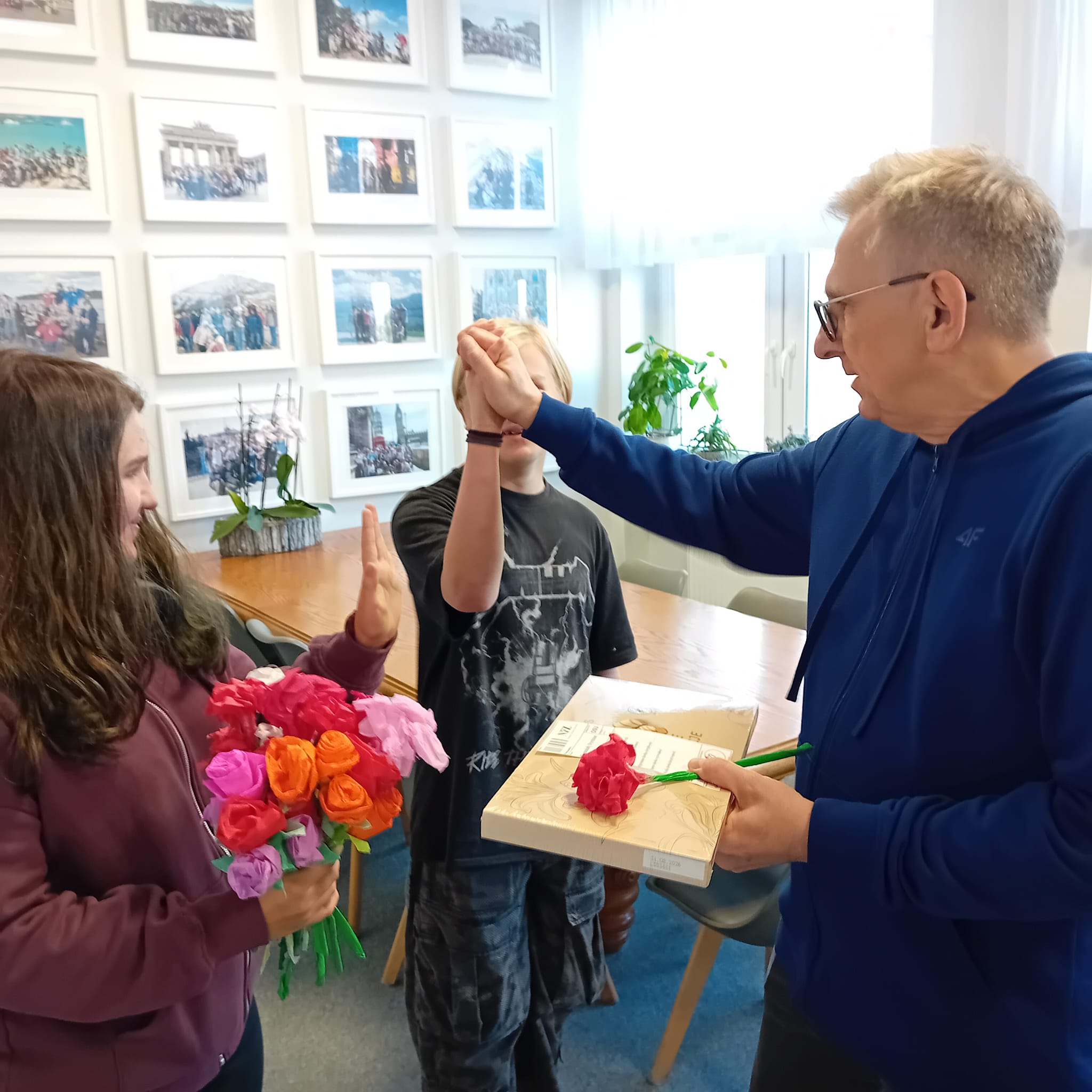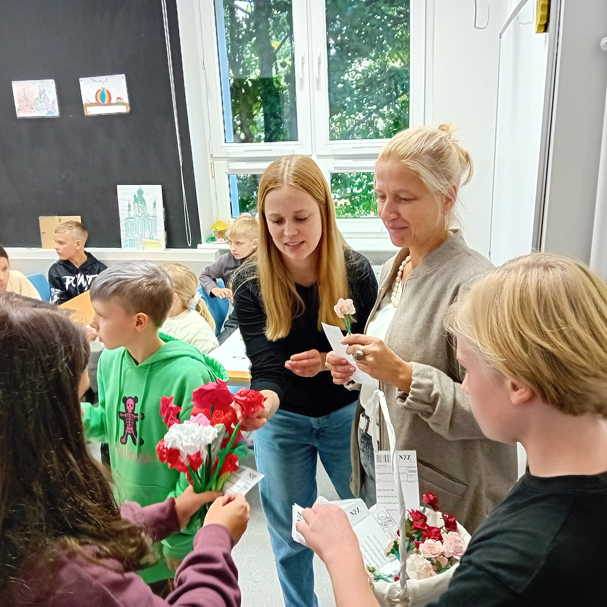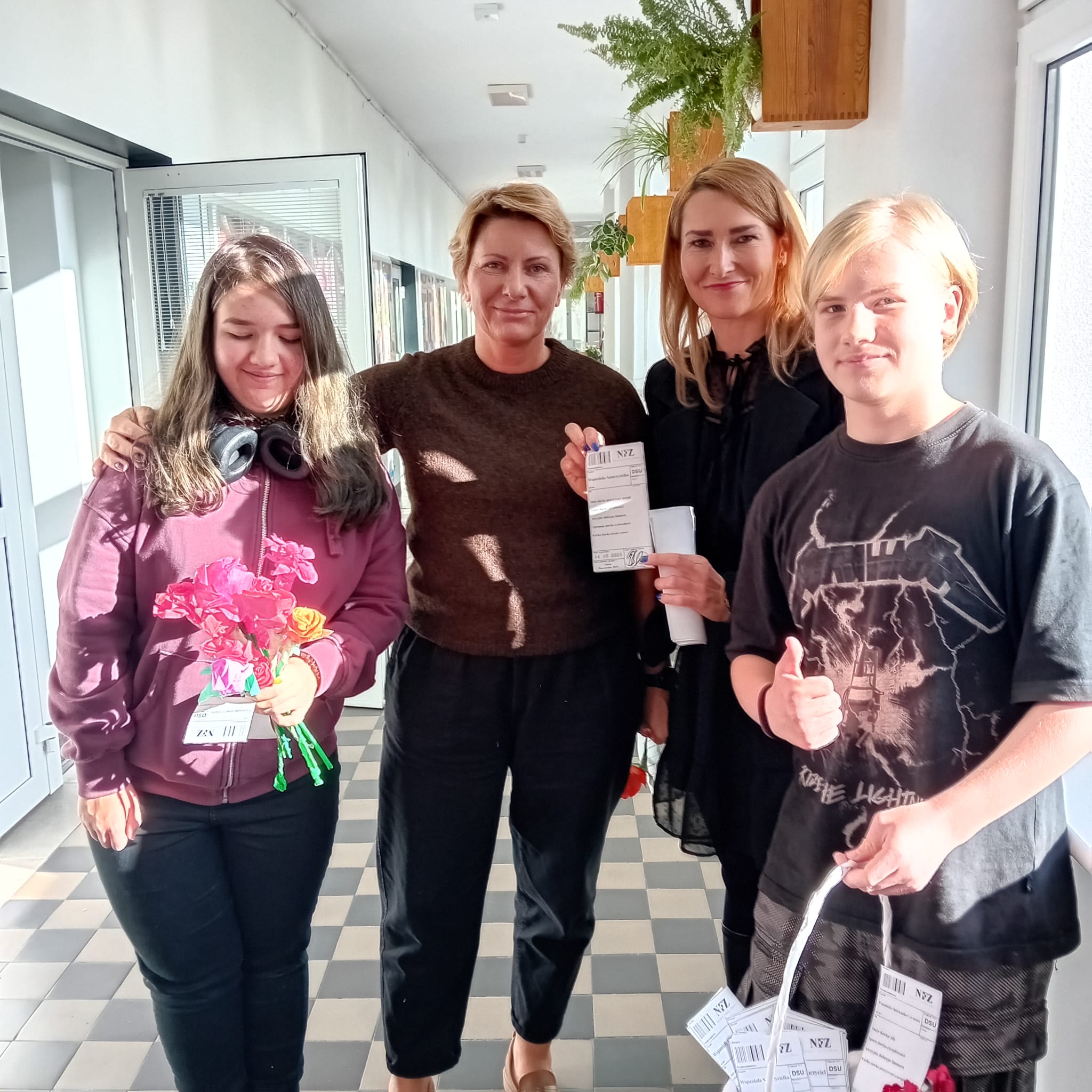 Każdy dostał własnoręcznie zrobiony kwiatek i „receptę” z dawką energii, humoru, cierpliwości, kreatywności i wytrwałości – czyli tego, co w naszej pracy najbardziej się przydaje.