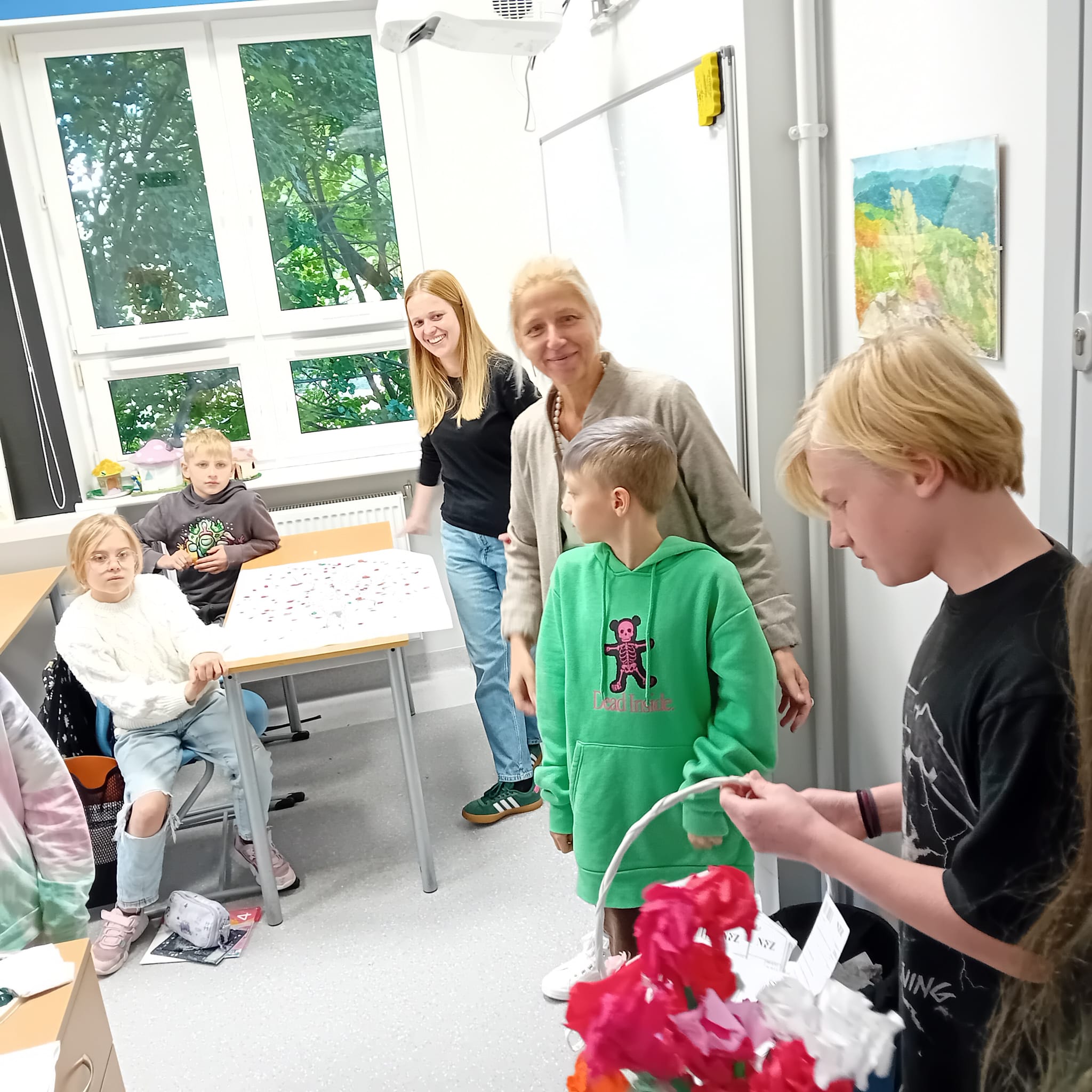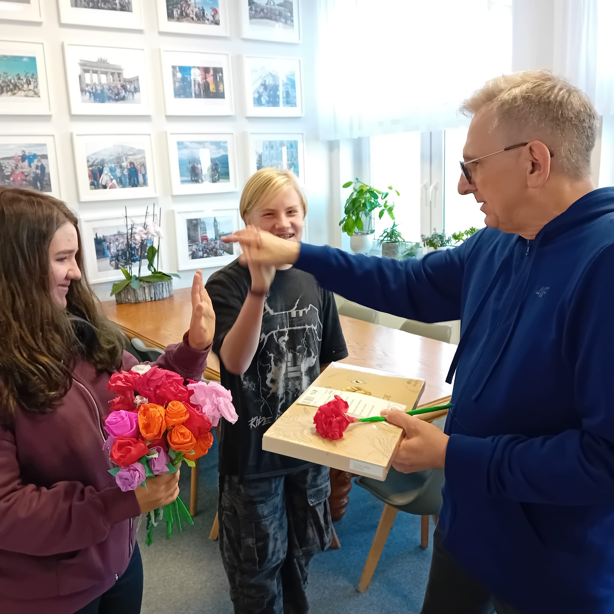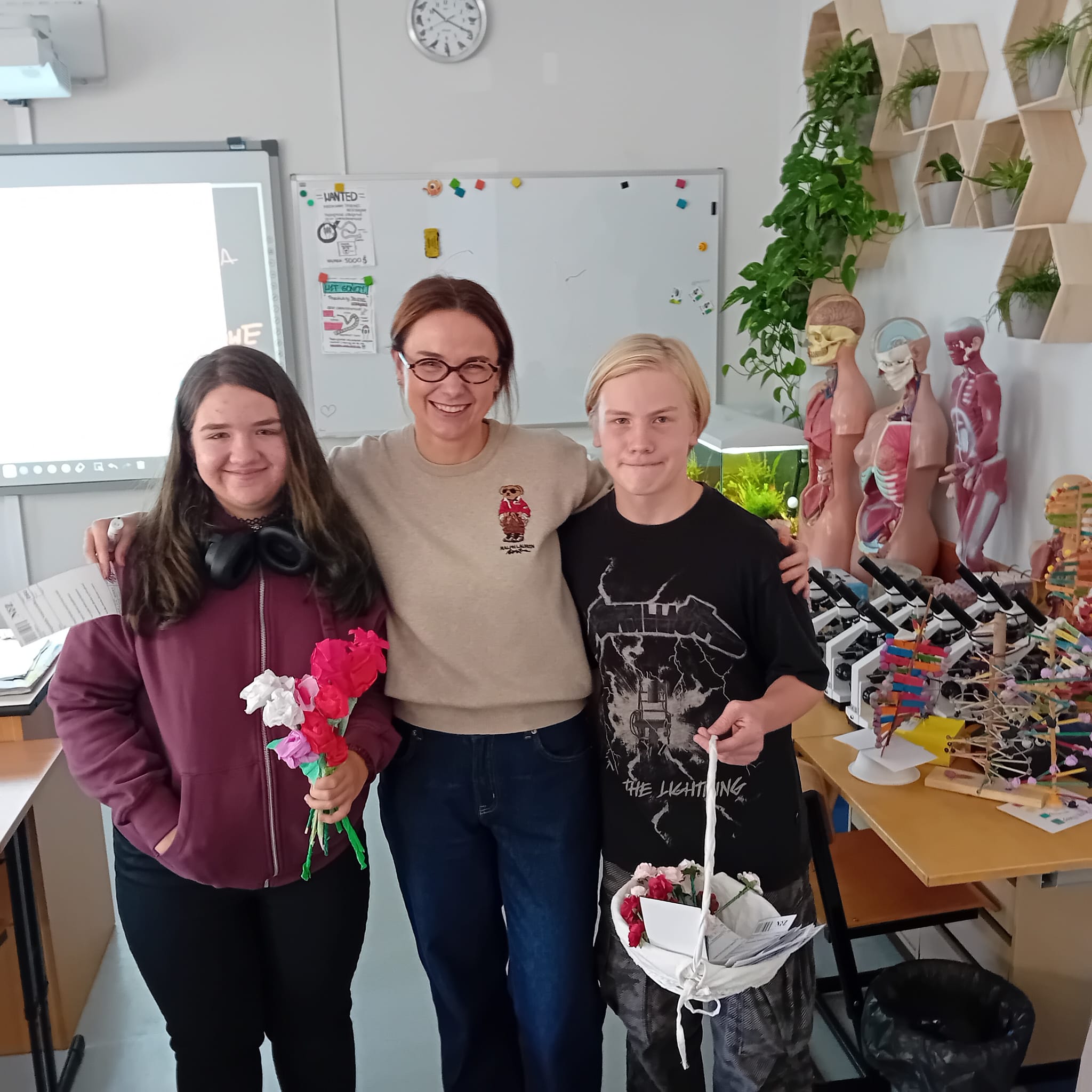 Każdy dostał własnoręcznie zrobiony kwiatek i „receptę” z dawką energii, humoru, cierpliwości, kreatywności i wytrwałości – czyli tego, co w naszej pracy najbardziej się przydaje.