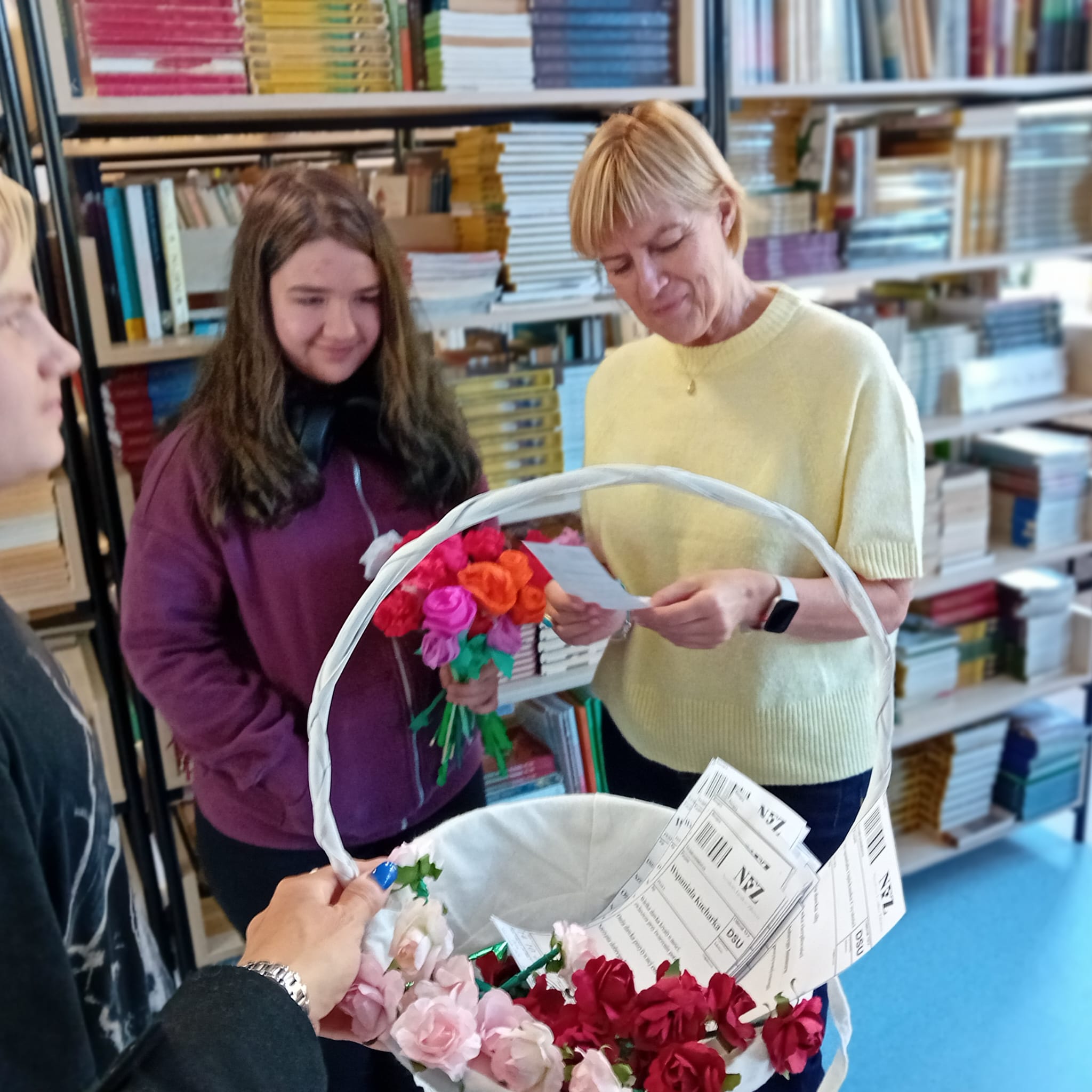 Pomysłowy prezent trafił do wszystkich: nauczycieli, pań z obsługi i administracji, biblioteki, kuchni i dyrekcji. Było dużo uśmiechów i trochę wzruszeń.
