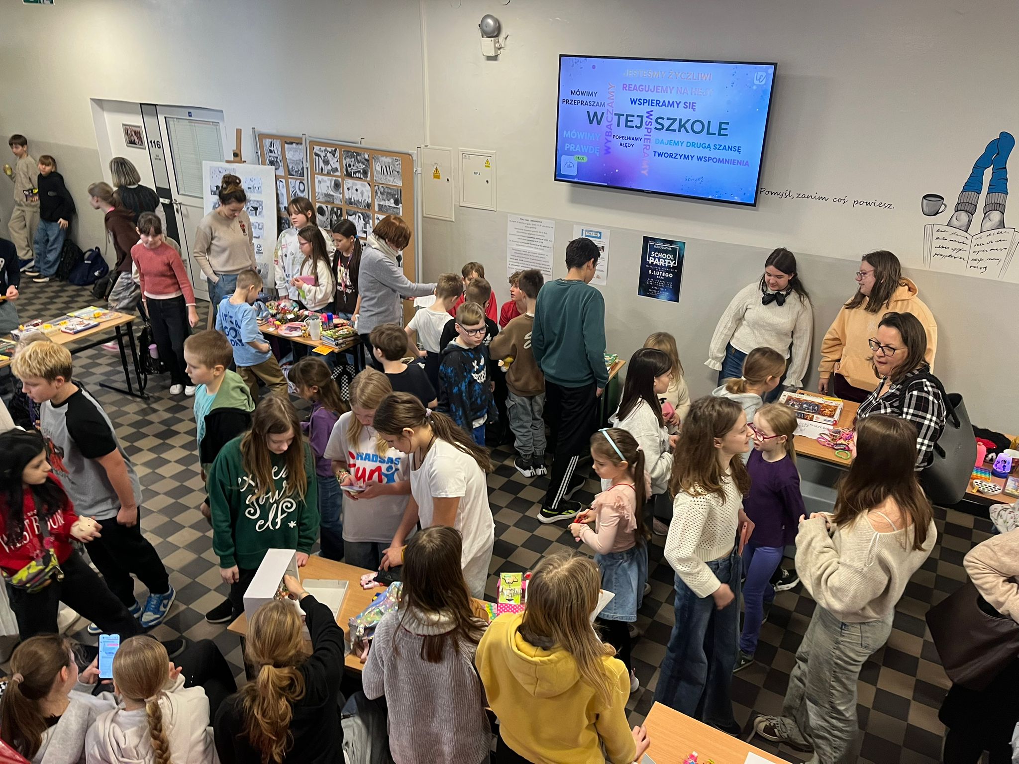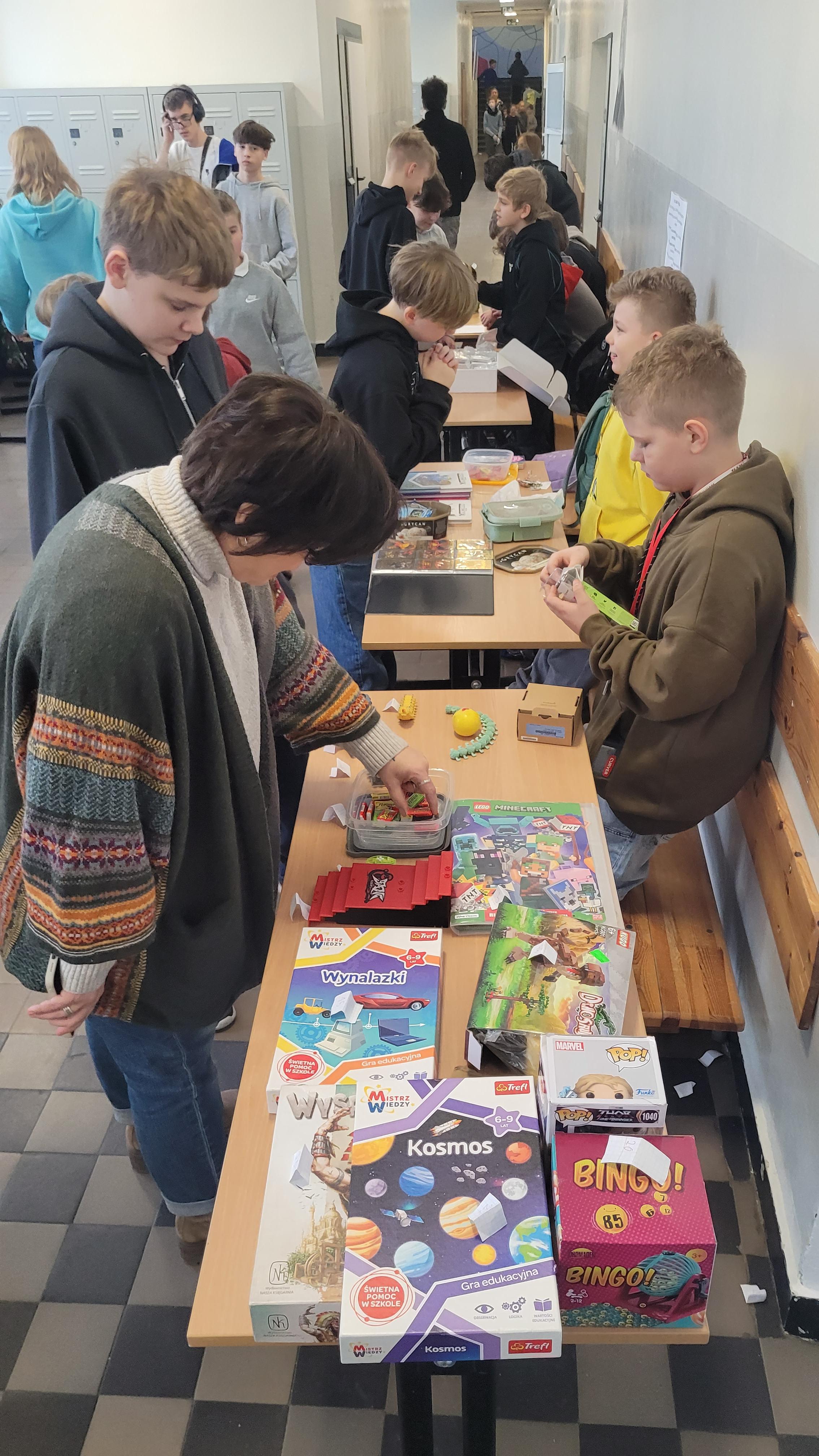 Dziś szkolne korytarze zamieniły się w tętniący życiem targ. Uczniowie klas IV–VIII handlowali, negocjowali, liczyli zyski i… świetnie się bawili. Frekwencja? Tłumy. Atmosfera? Jak na dobrym bazarze – życzliwa i pełna energii.