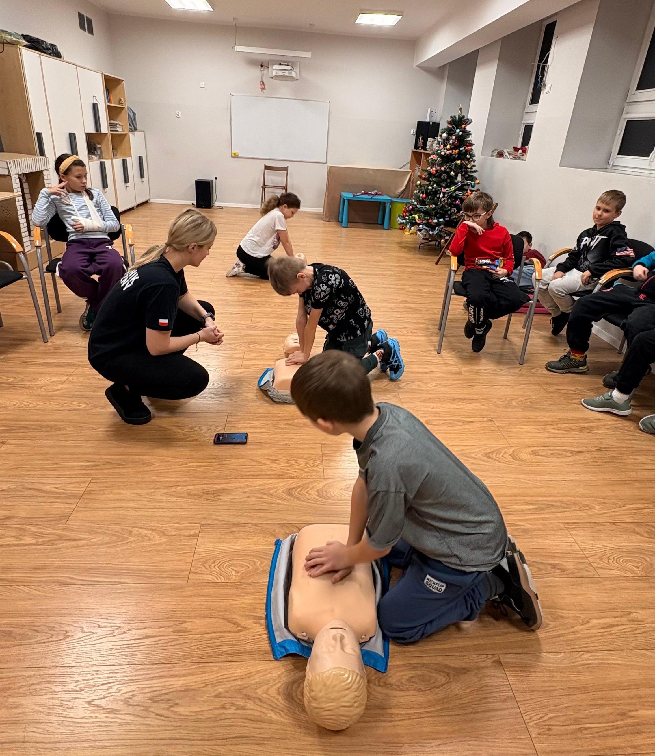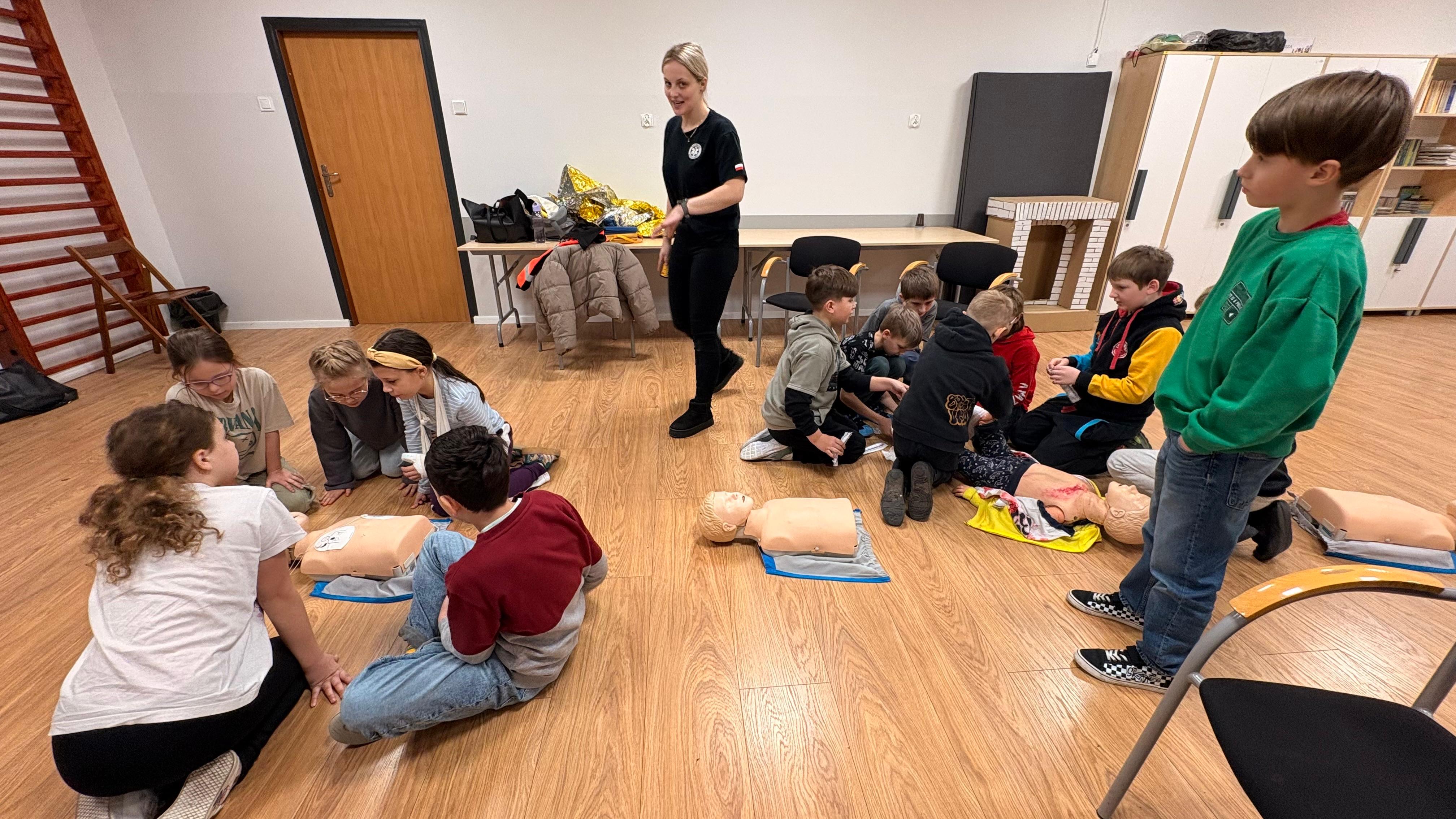 Uczniowie klas IVb i IVd wzięli udział w szkoleniu z pierwszej pomocy, prowadzonym przez ratowniczkę medyczną. Było konkretnie, dynamicznie i bardzo praktycznie – dużo działania, realne sytuacje i wiedza, która naprawdę się przydaje.Bo takich umiejętności nigdy za wiele.
