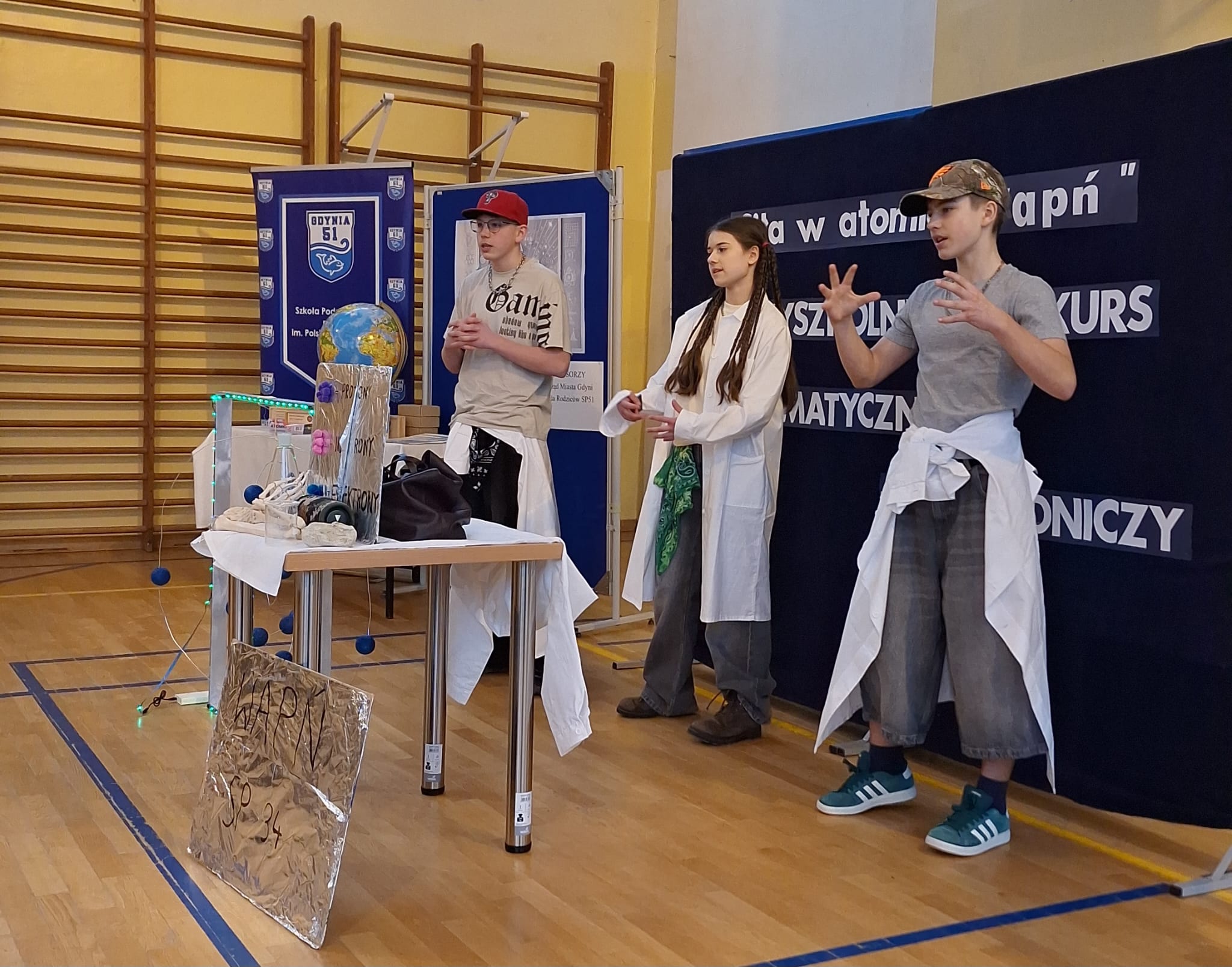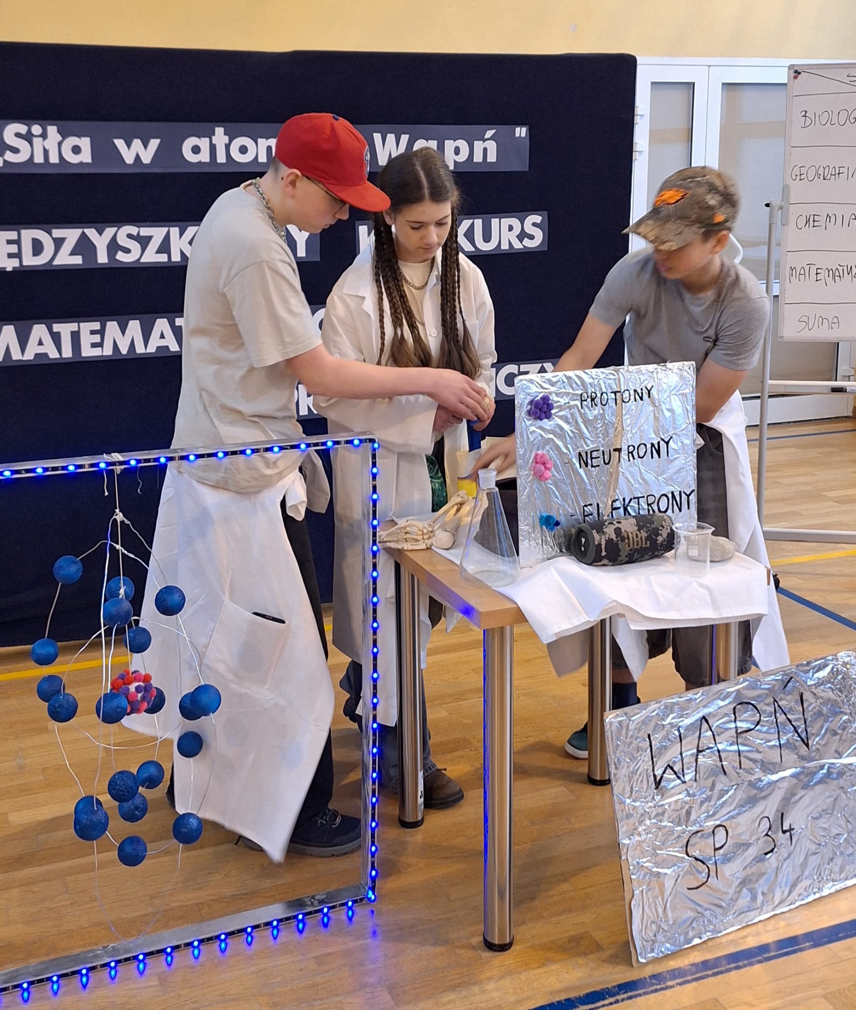 Zespół w składzie: Marika (VIIb), Igor (VIIIa) i Aleksander (VIIIb) zajął 4. miejsce oraz zdobył wyróżnienie za model atomu i prezentację wapnia