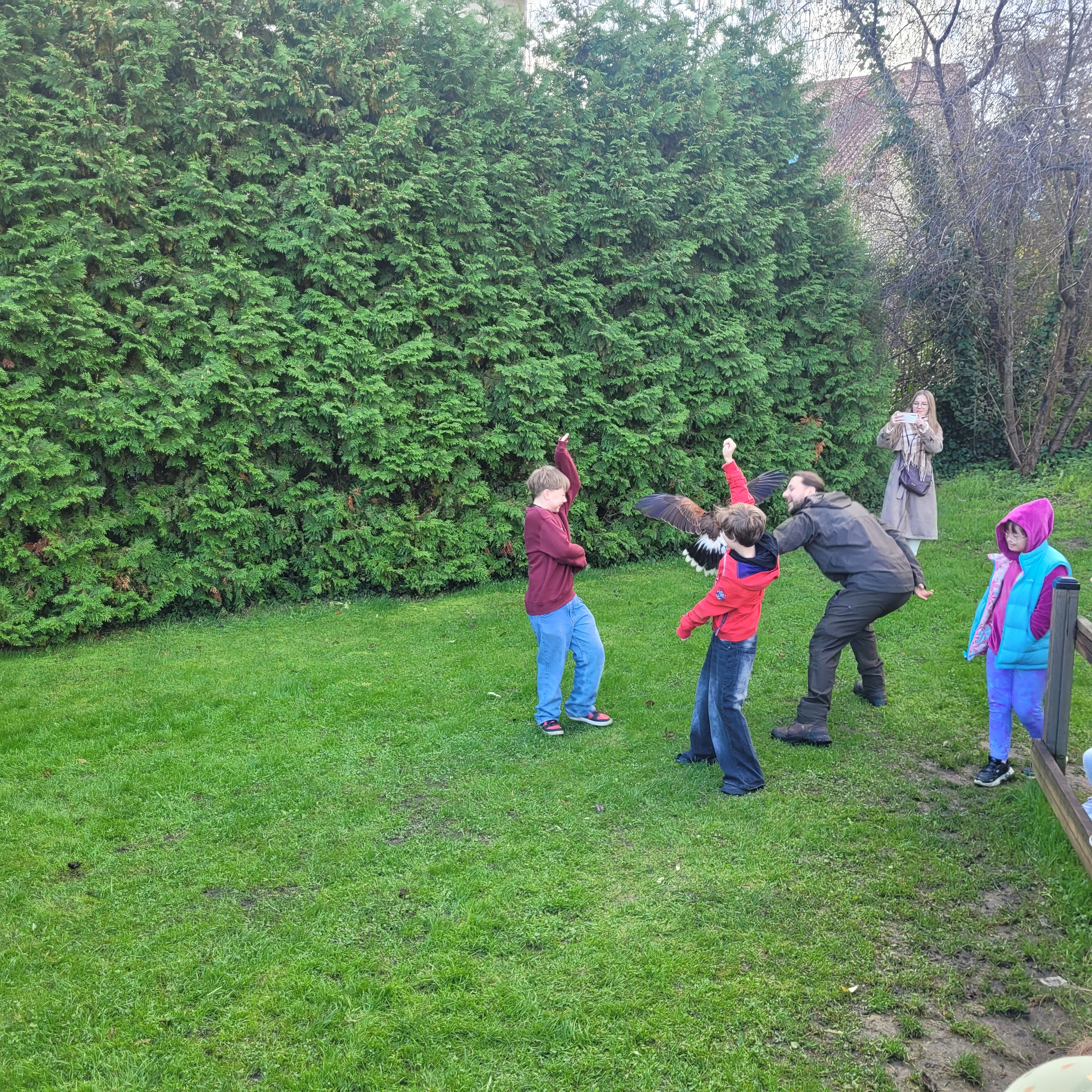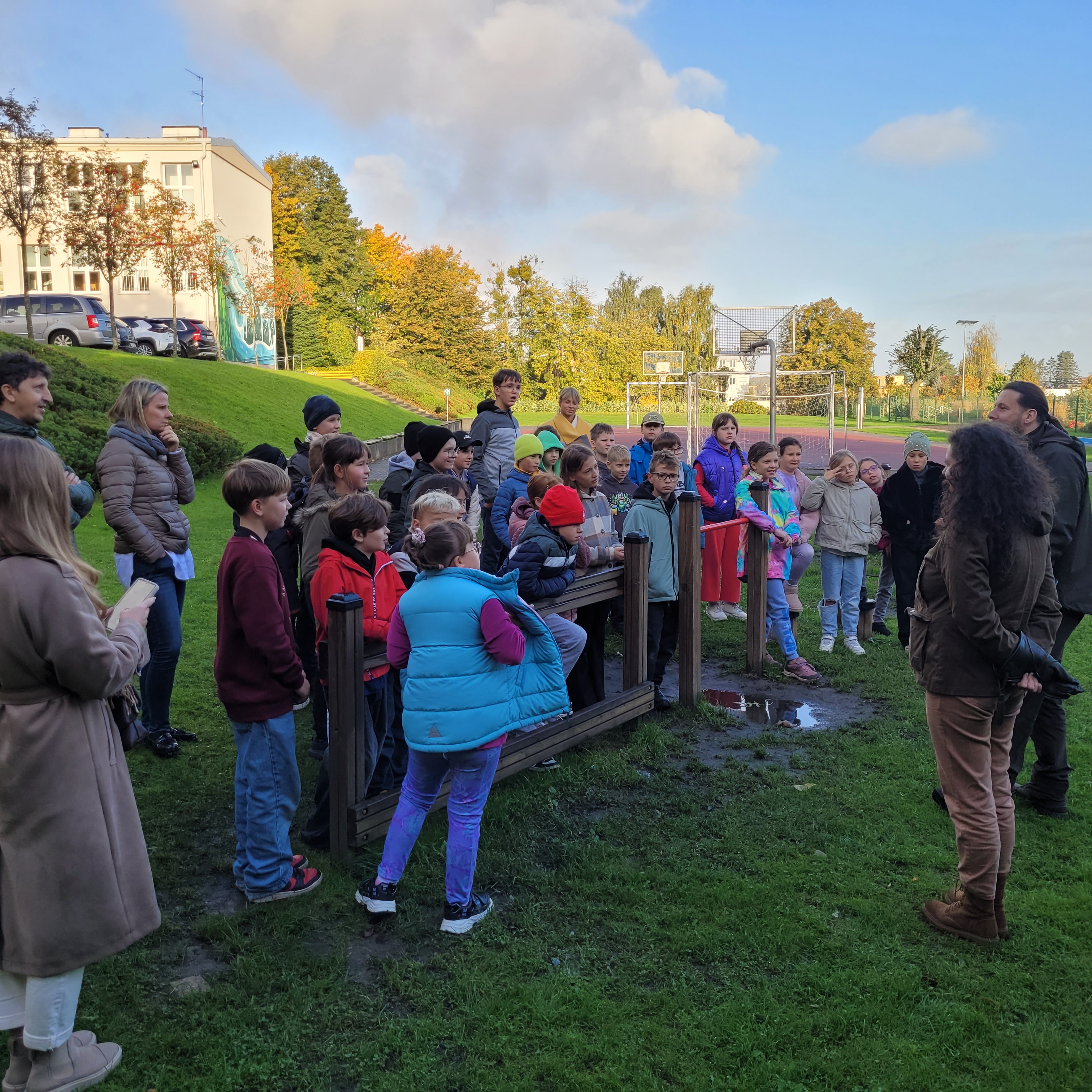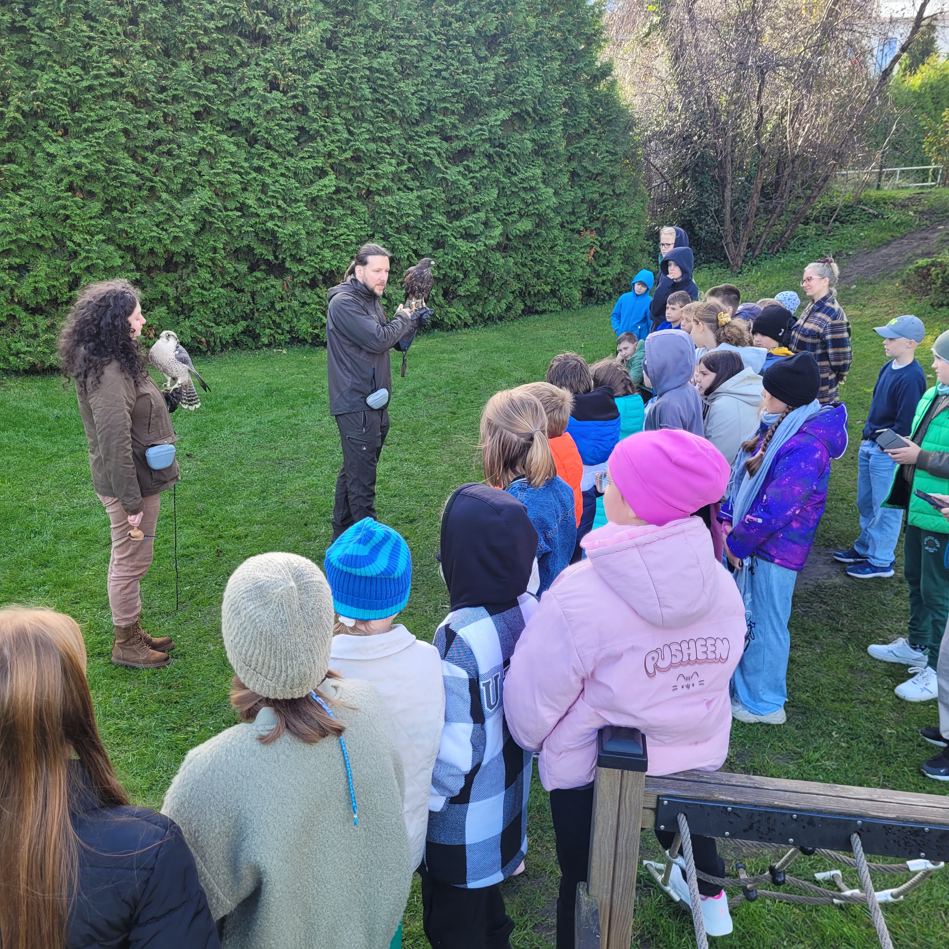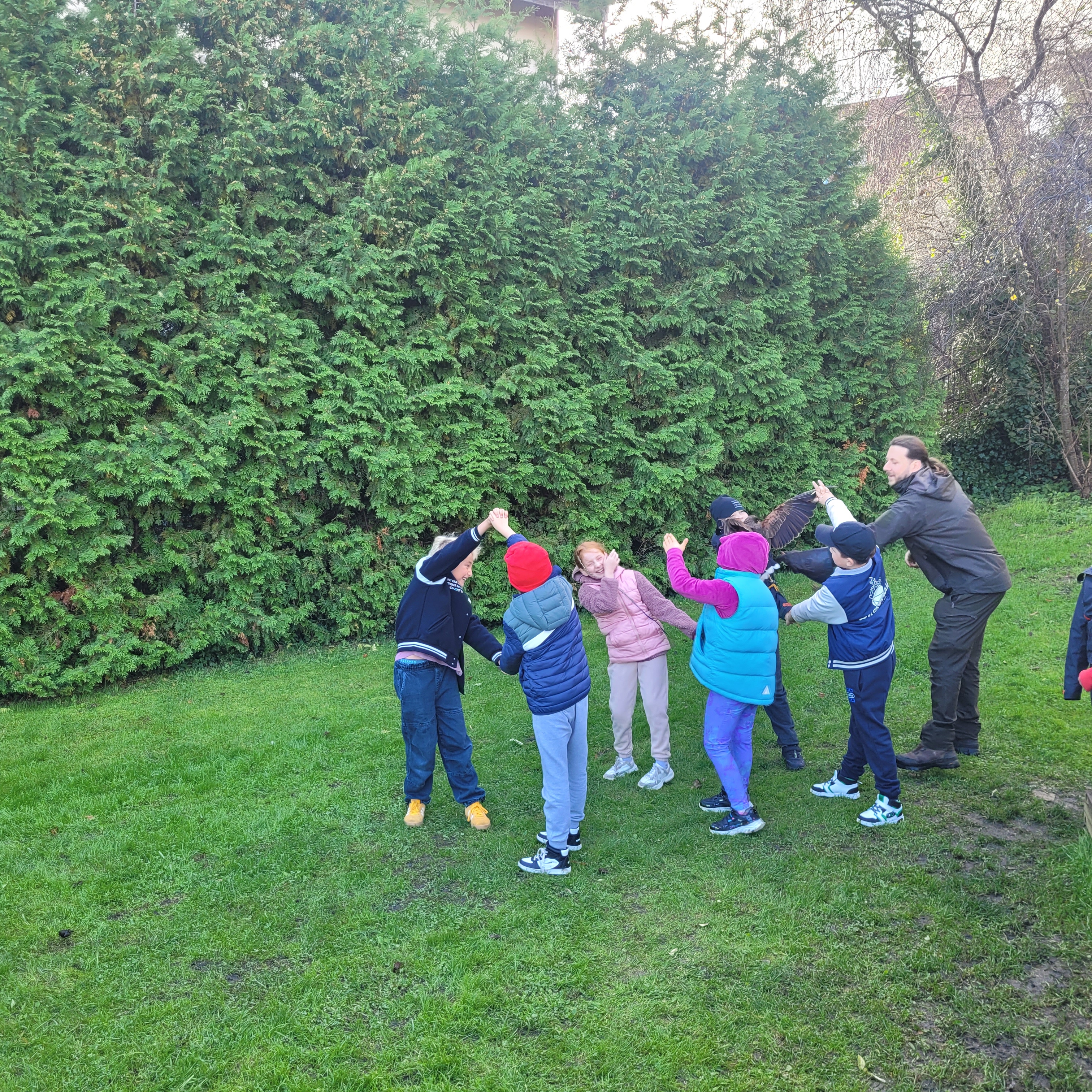 Na terenie rekreacyjnym szkoły dzieci zobaczyły z bliska żywe ptaki drapieżne, które nie tylko prezentowały swoje skrzydła, ale też latały tuż nad głowami! Były fascynujące opowieści, ciekawostki, pokaz pazurów i zwyczajów tych niezwykłych zwierząt. Uczniowie słuchali z zapartym tchem!