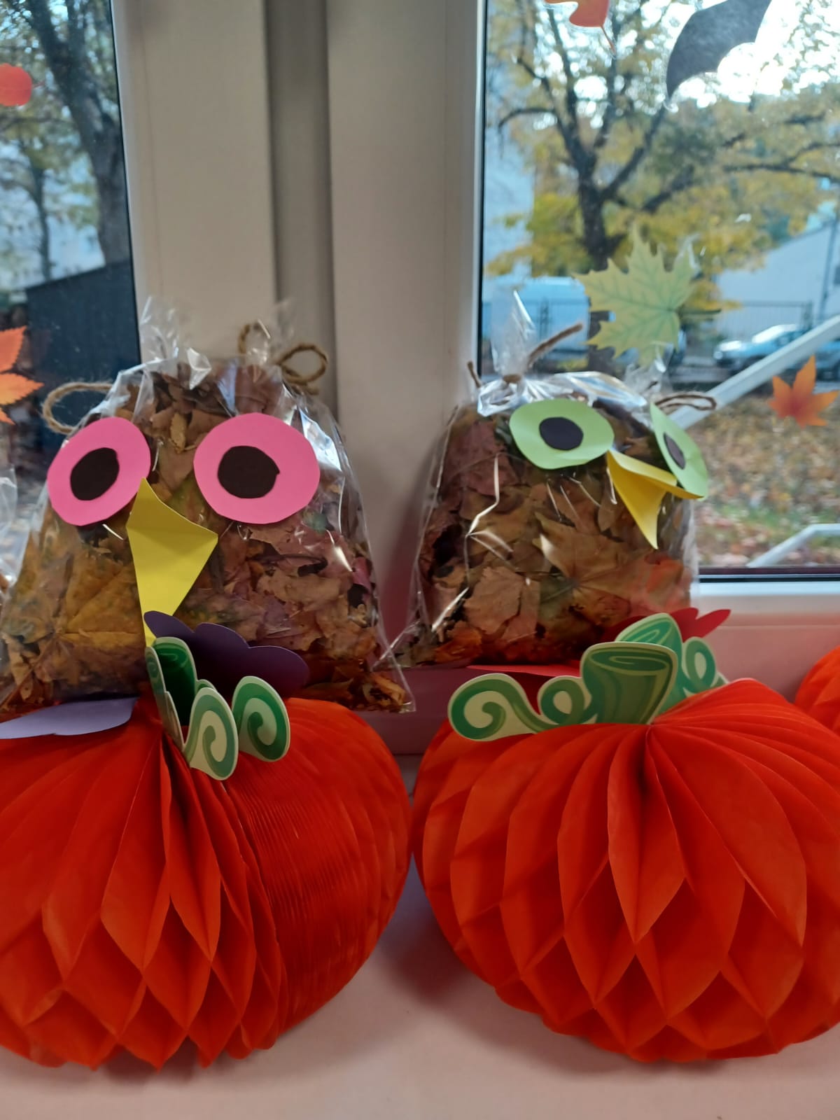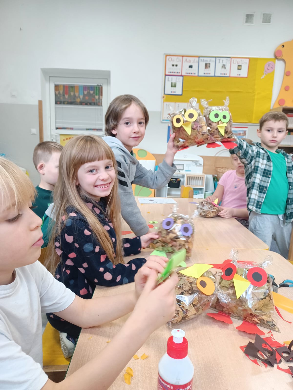 W naszej świetlicy powstały wyjątkowe, przestrzenne sowy — mądre, kolorowe i pełne jesiennego uroku! Dzieci wykorzystały liście, które wcześniej same zebrały i wysuszyły, a kolorowe dodatki dopełniły ich dzieła.