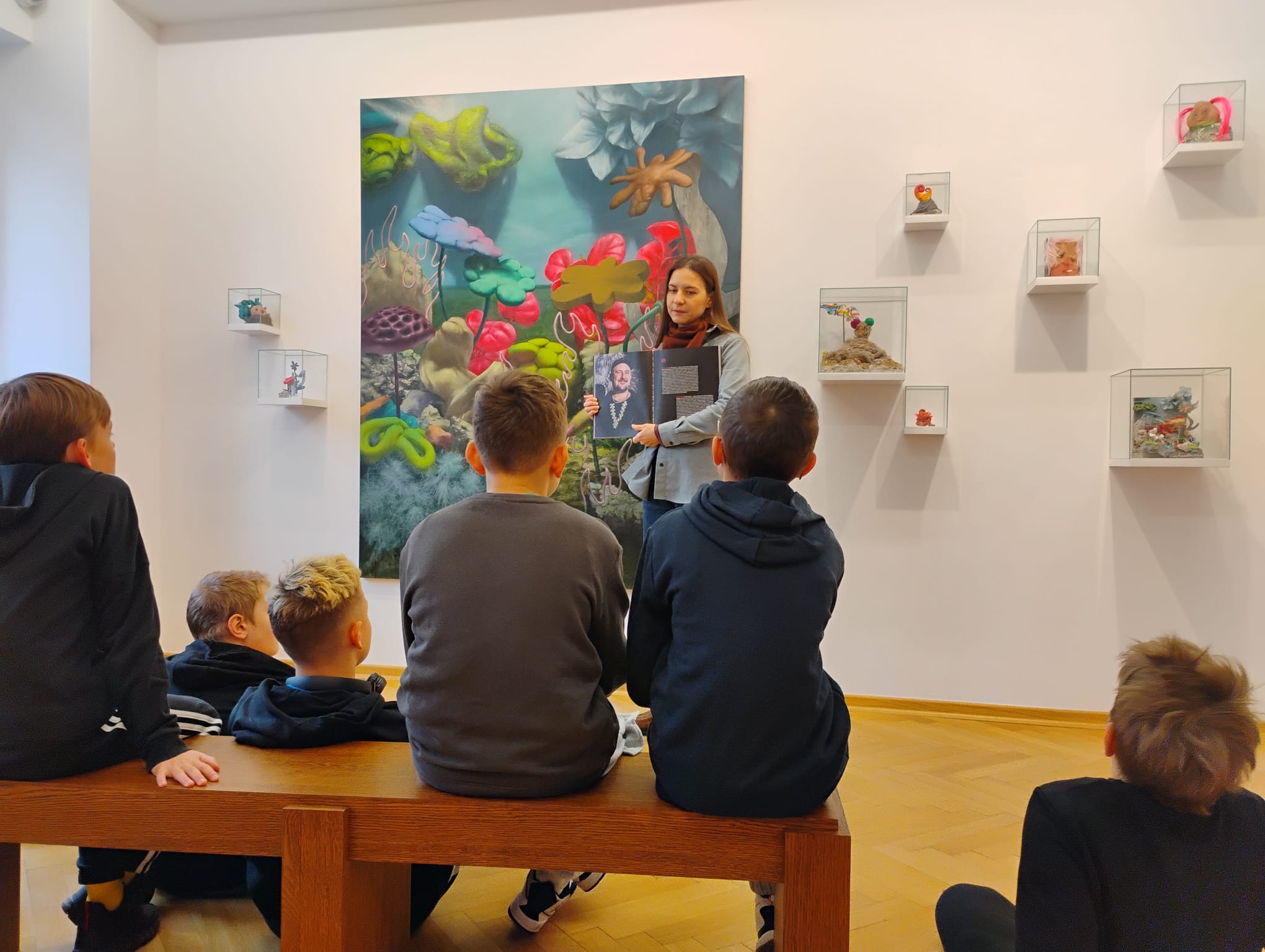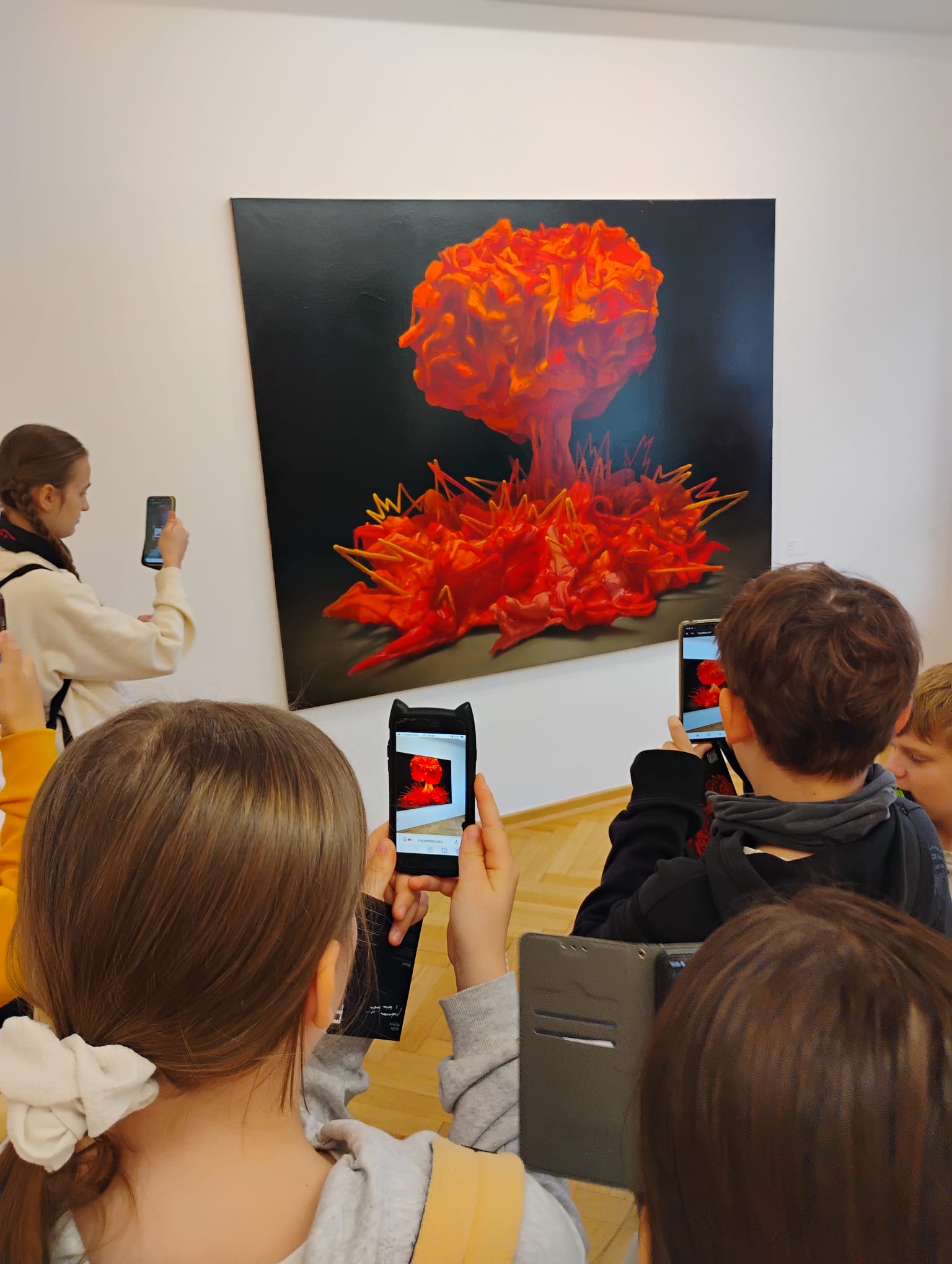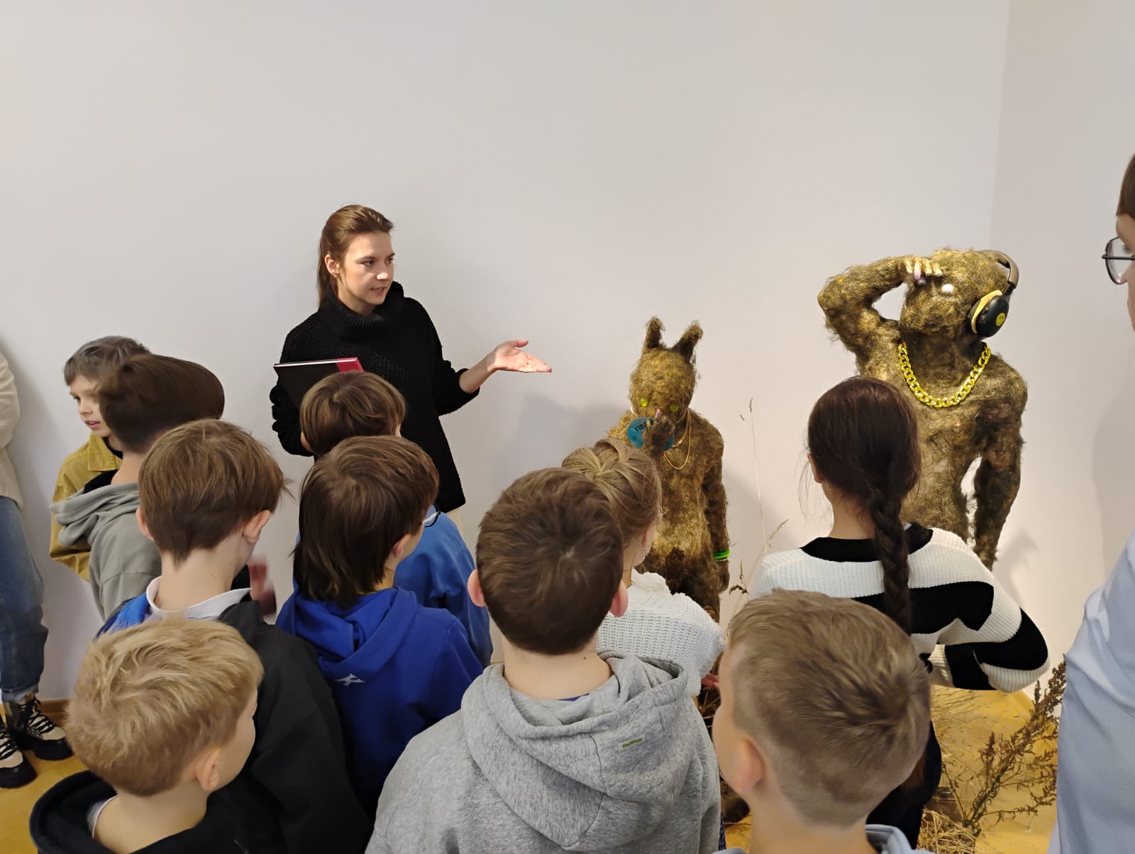 W tym roku szkolnym kilka klas już zwiedziło wystawy i wzięło udział w warsztatach. Podczas zajęć oglądamy prace artystów, rozmawiamy z twórcami i tworzymy własne dzieła w przestrzeni galerii.