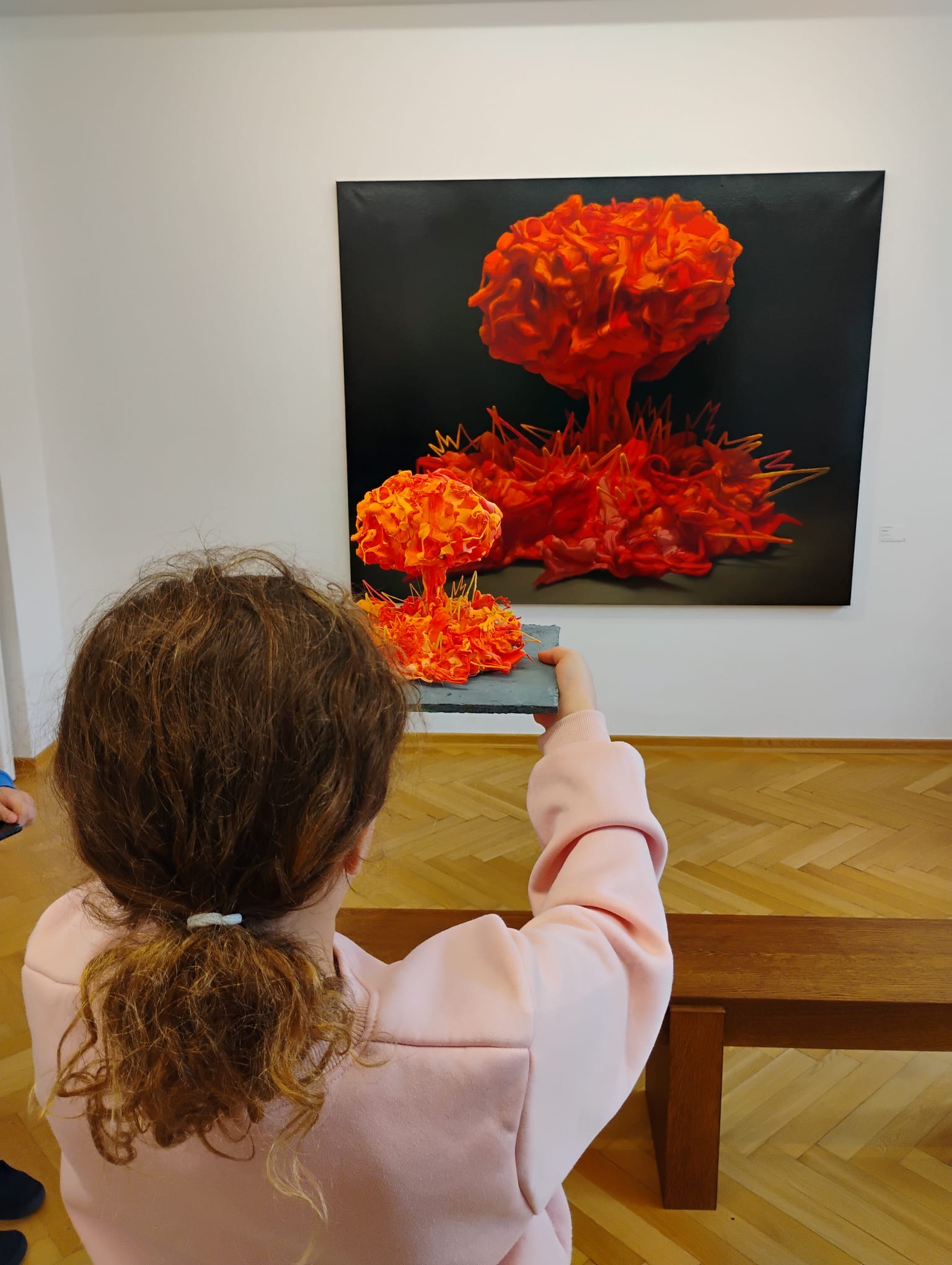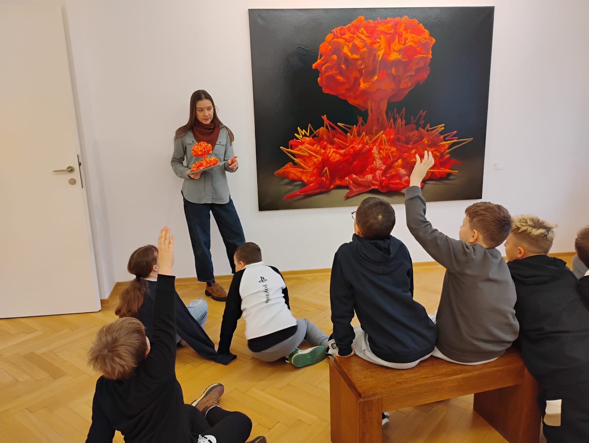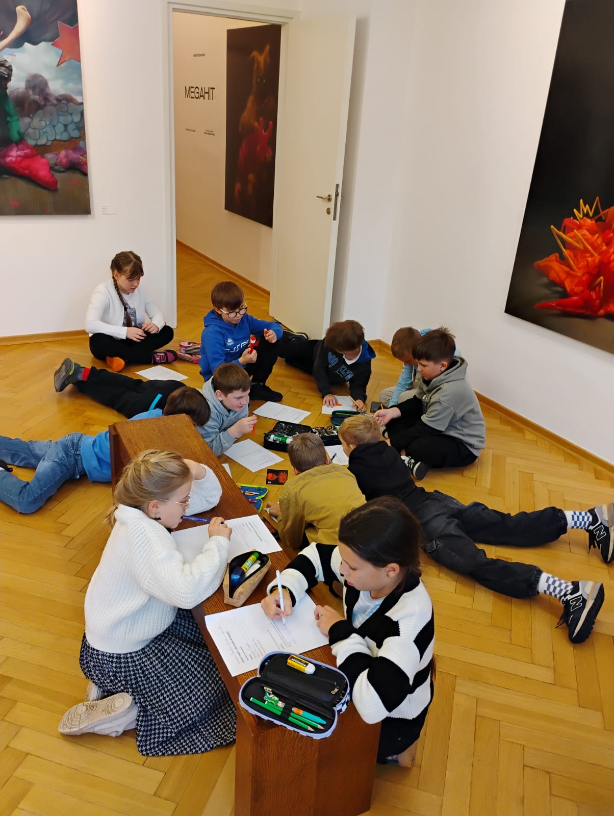 W tym roku szkolnym kilka klas już zwiedziło wystawy i wzięło udział w warsztatach. Podczas zajęć oglądamy prace artystów, rozmawiamy z twórcami i tworzymy własne dzieła w przestrzeni galerii.
