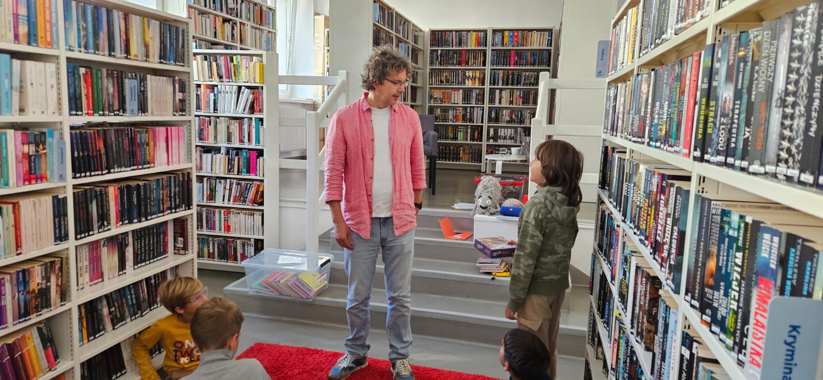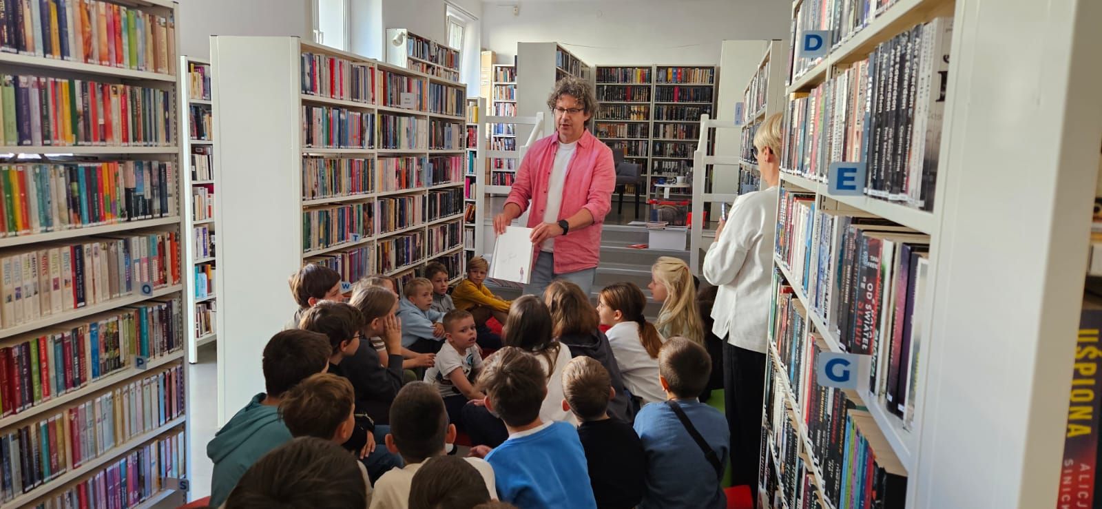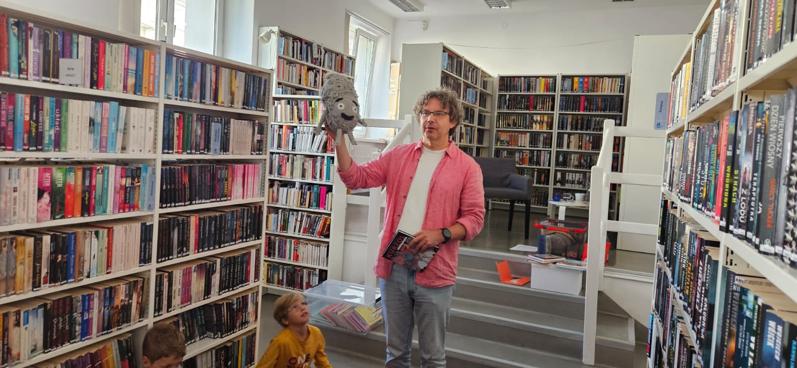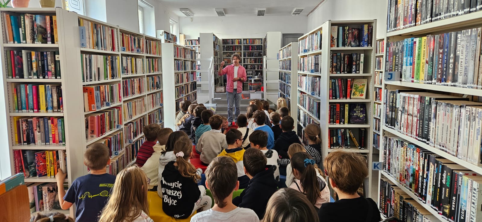 Podczas spotkania pisarz zdradził, skąd biorą się jego pomysły, opowiedział o tajnikach tworzenia historii i – co najważniejsze – zachęcał dzieci do czytania i sięgania po książki z ciekawością. Były pytania, rozmowy i dużo inspiracji!