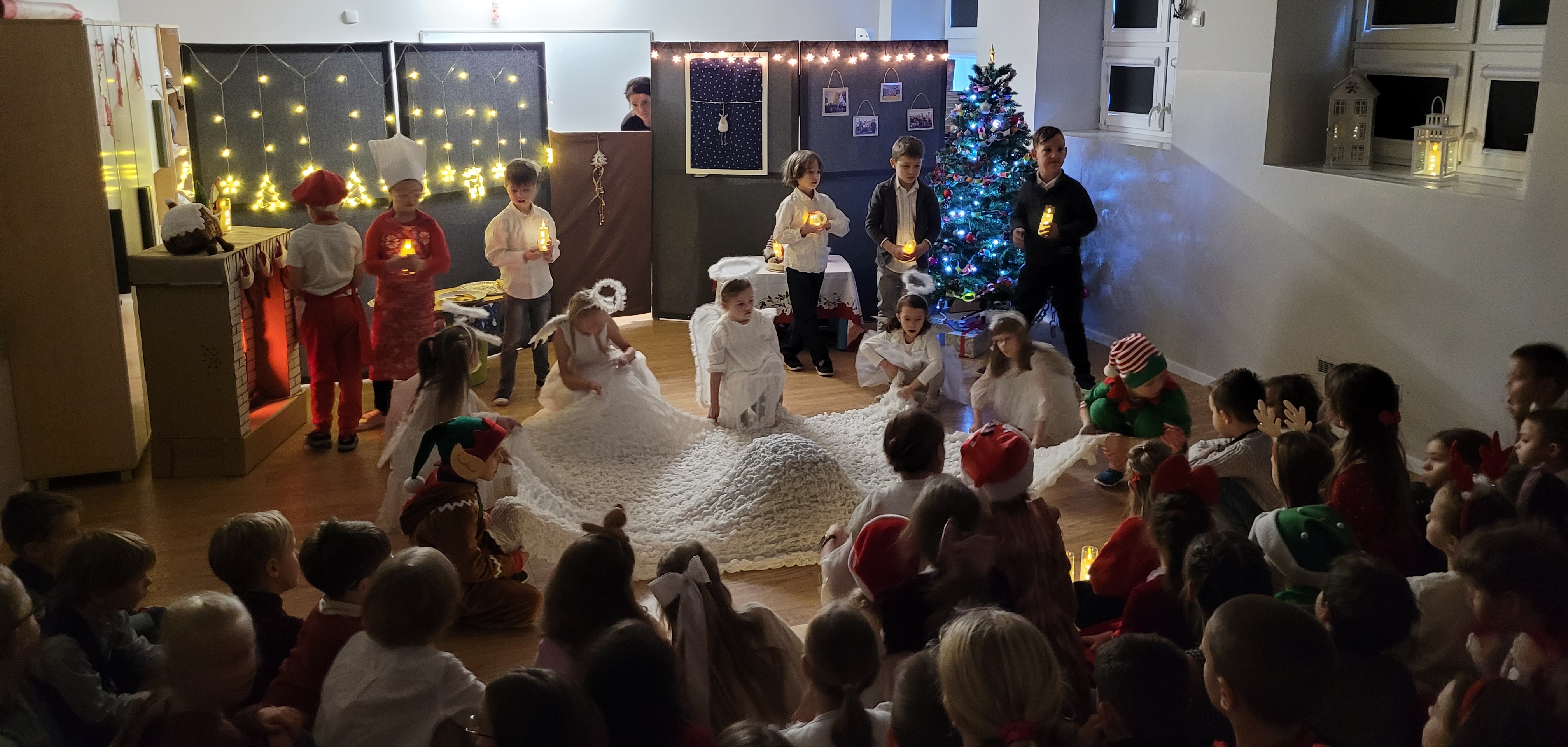 Dziękujemy naszej wspaniałej zerówce za przepiękne przedstawienie świąteczne, przygotowane dla klas I–III. Była ciepła atmosfera, skupienie, radość i ten wyjątkowy klimat, który sprawia, że na chwilę wszyscy zwalniamy i po prostu jesteśmy razem.