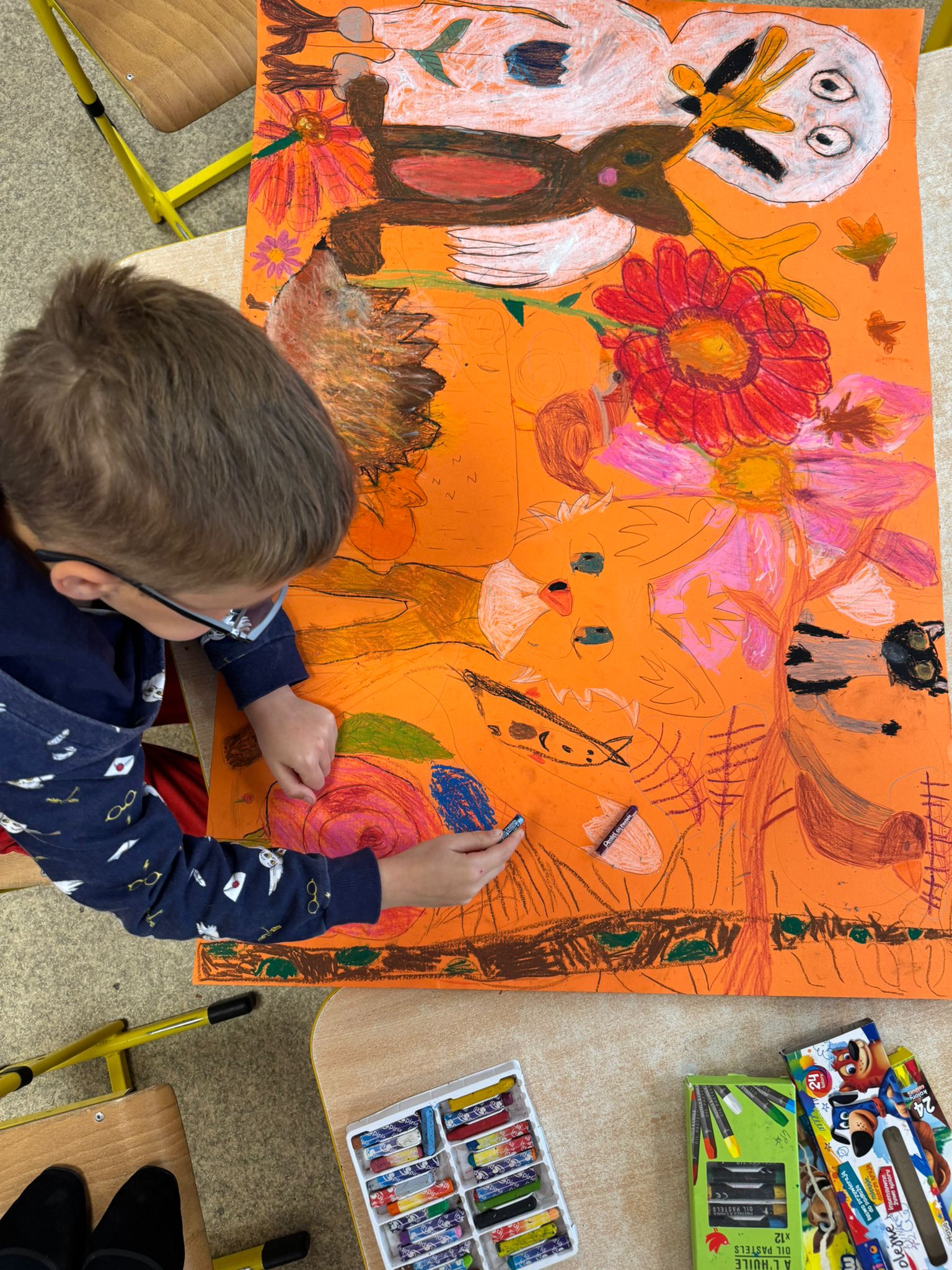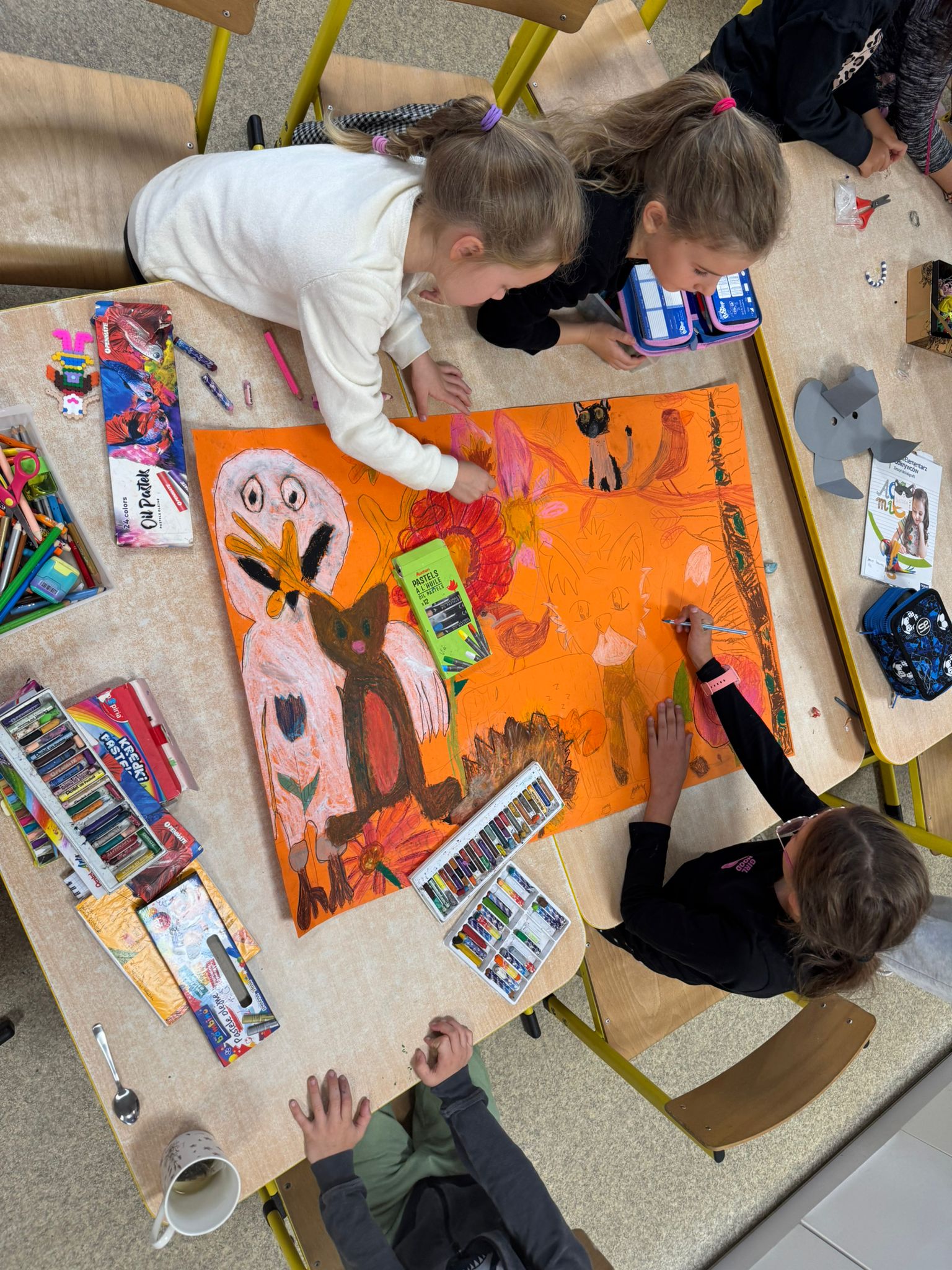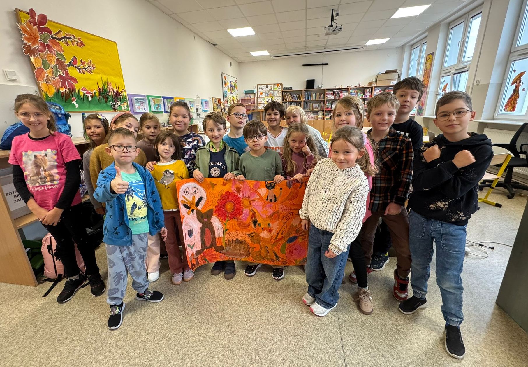 Ostatnio dzieci ze świetlicy stworzyły wspólną pracę w ramach projektu „Zwierzęta i rośliny jesieni” – kolorowo, pomysłowo i zespołowo.