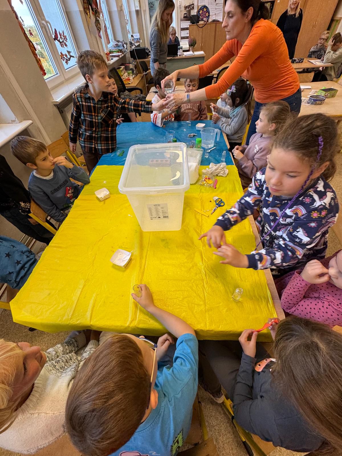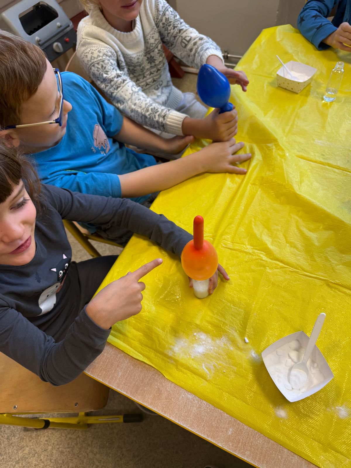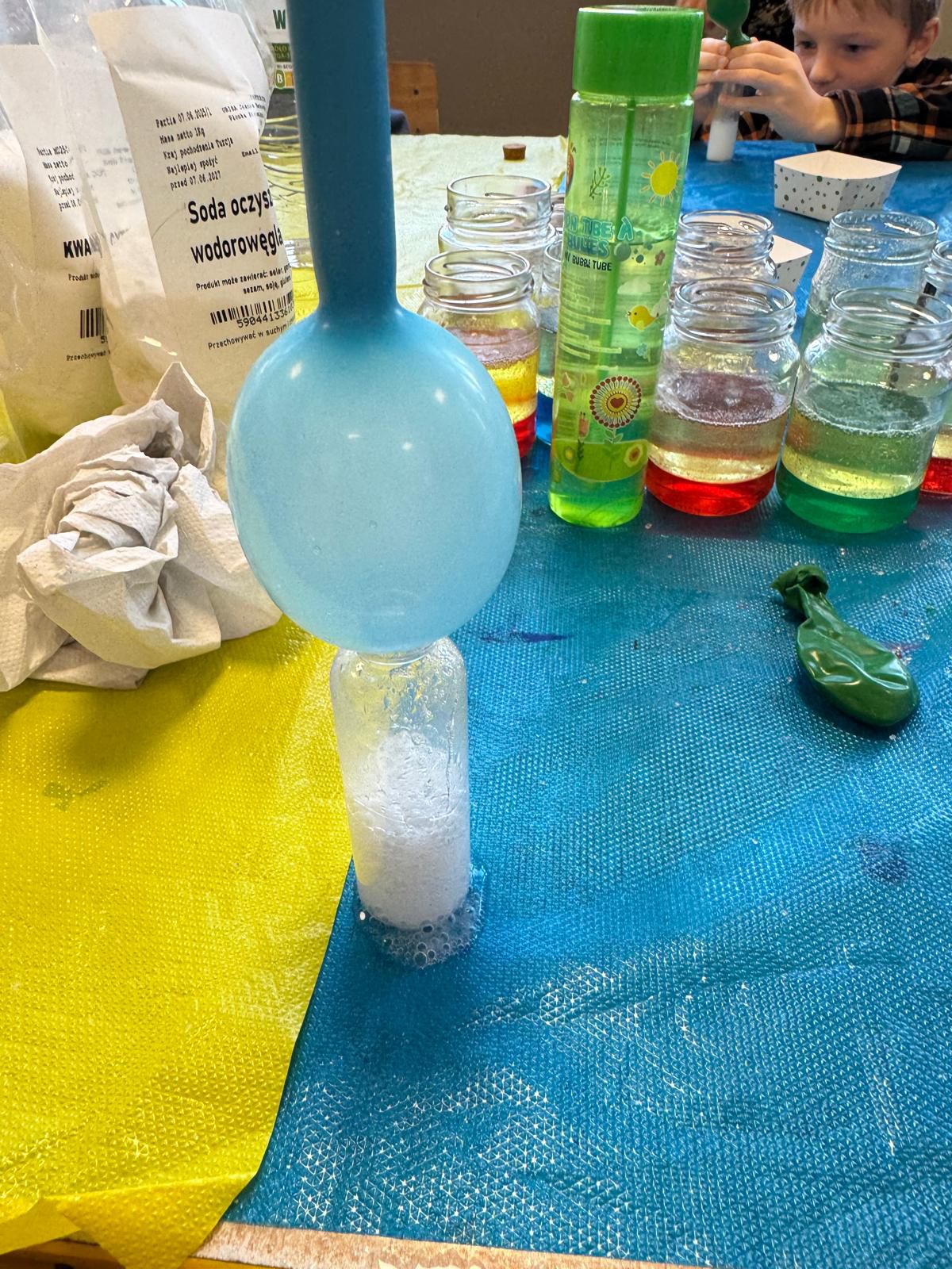 A kilka dni później… świetlica zamieniła się w mini laboratorium! Lewitujące bańki, samopompujące się balony i kosmiczne wulkany wywołały zachwyt i salwy śmiechu. Przy okazji dzieci odkryły, jak „działa” dwutlenek węgla.