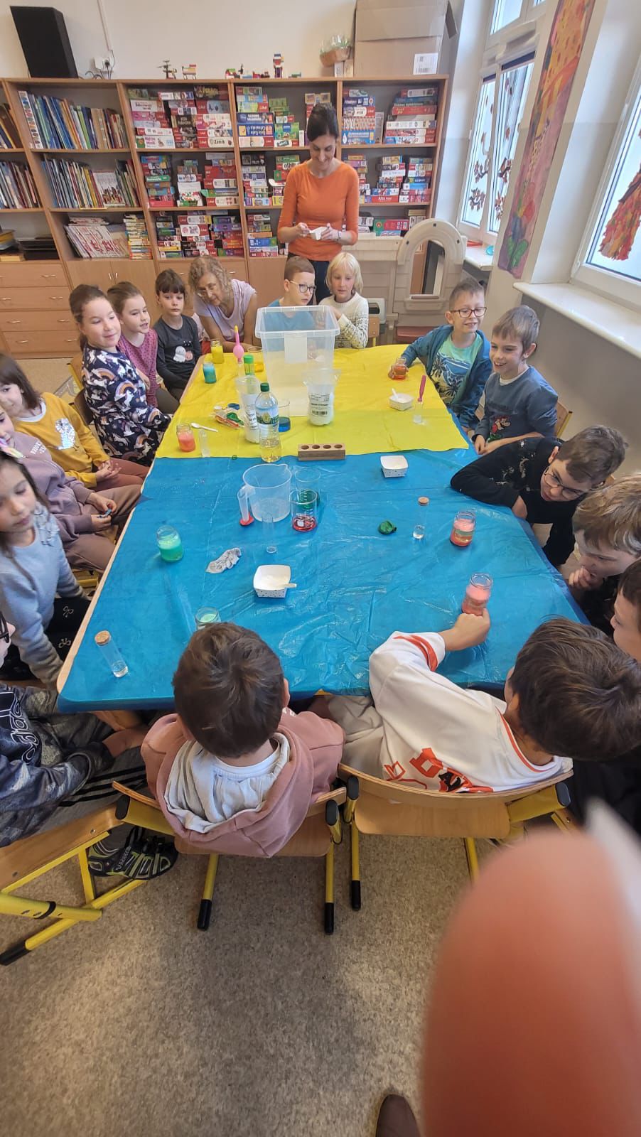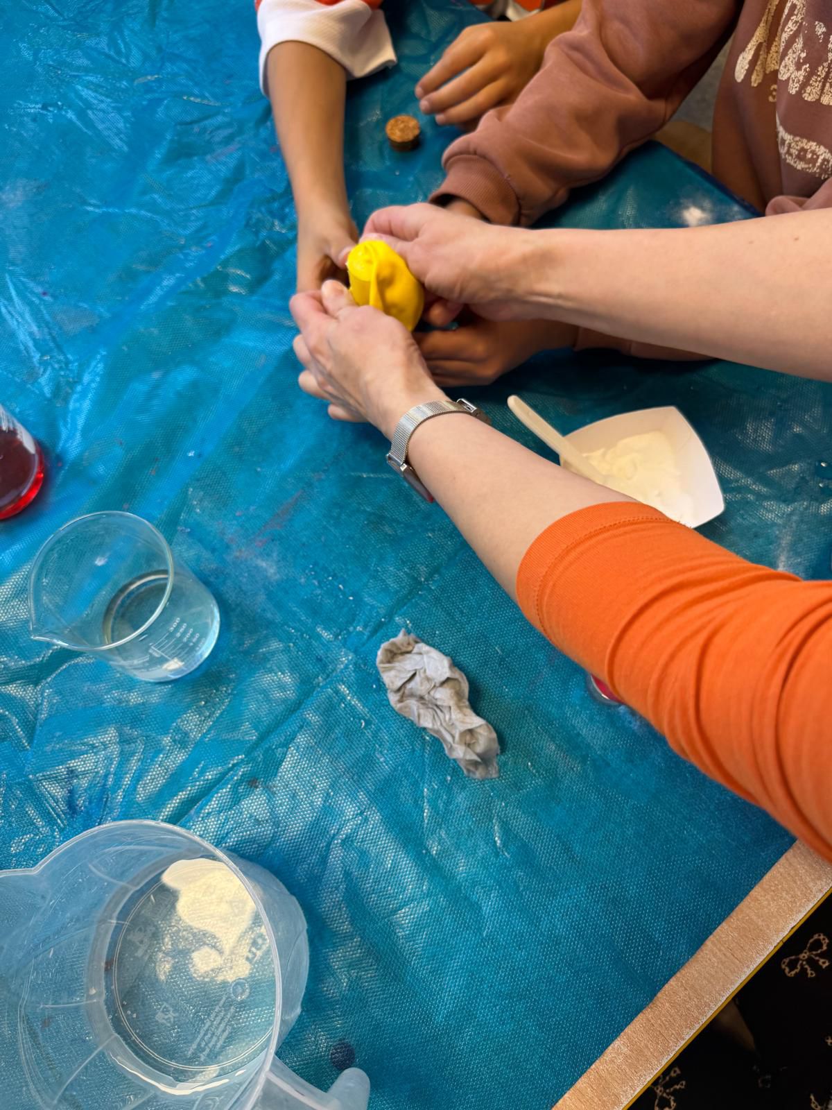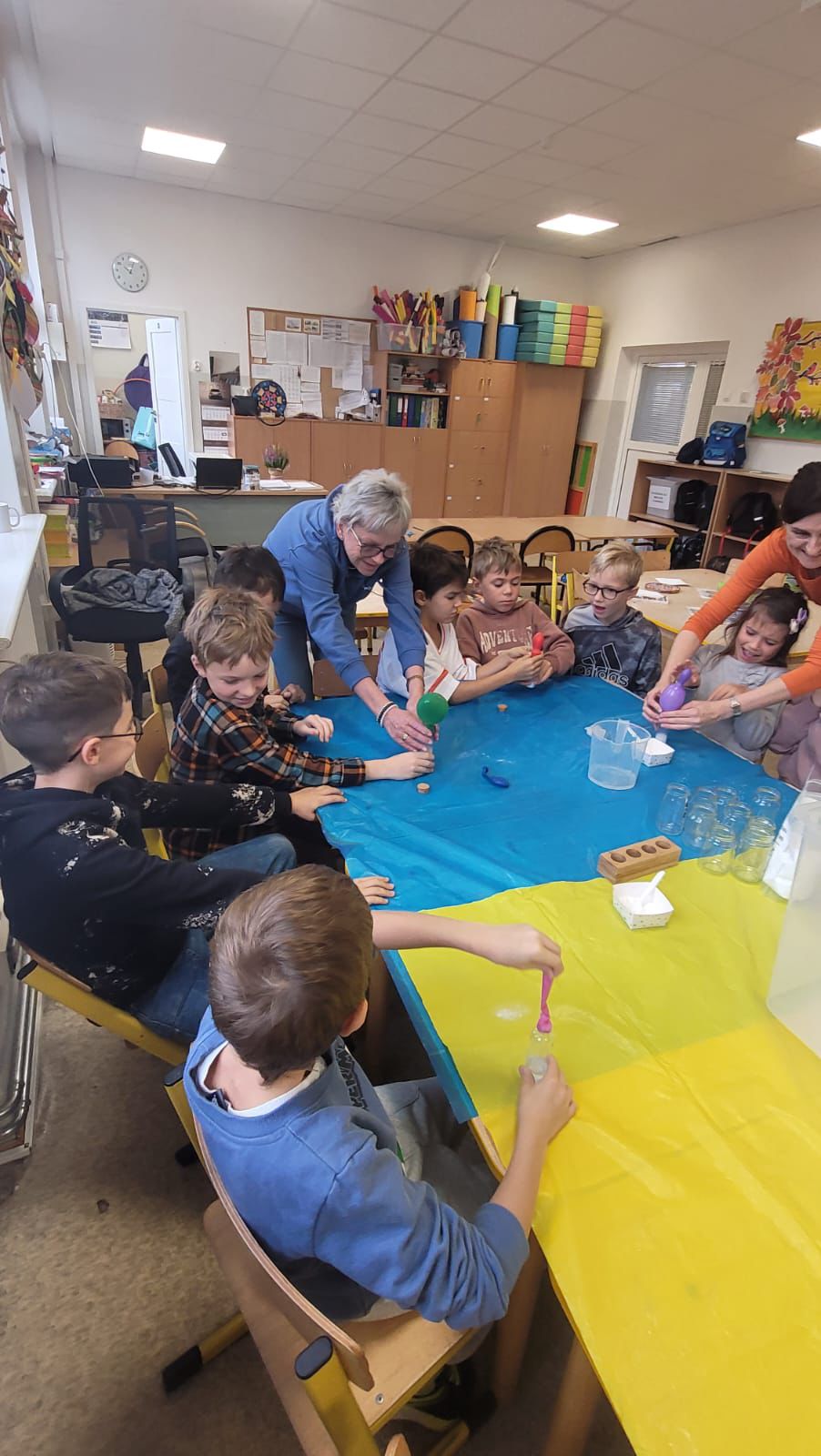 A kilka dni później… świetlica zamieniła się w mini laboratorium! Lewitujące bańki, samopompujące się balony i kosmiczne wulkany wywołały zachwyt i salwy śmiechu. Przy okazji dzieci odkryły, jak „działa” dwutlenek węgla.