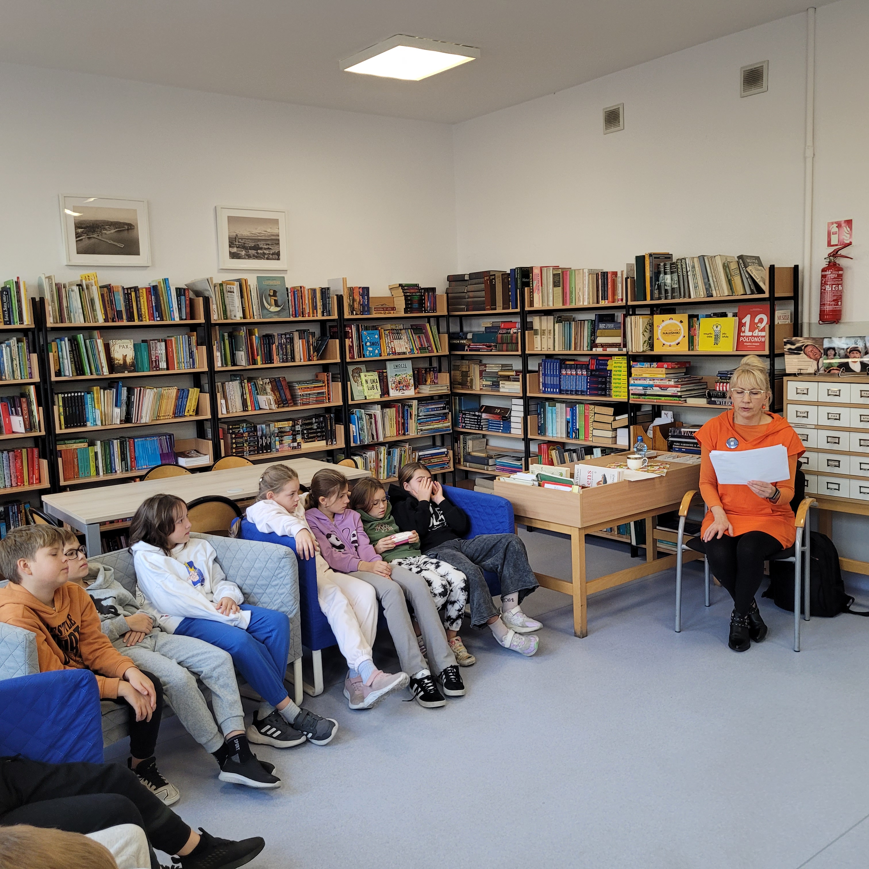 Dziś w naszej świetlicy gościła znakomita aktorka Teatru Miejskiego im. W. Gombrowicza w Gdyni – Olga Barbara Długońska. Przeczytała uczniom klasy IIIb opowiadanie, zamieniając zwykłe czytanie w mały teatralny spektakl.