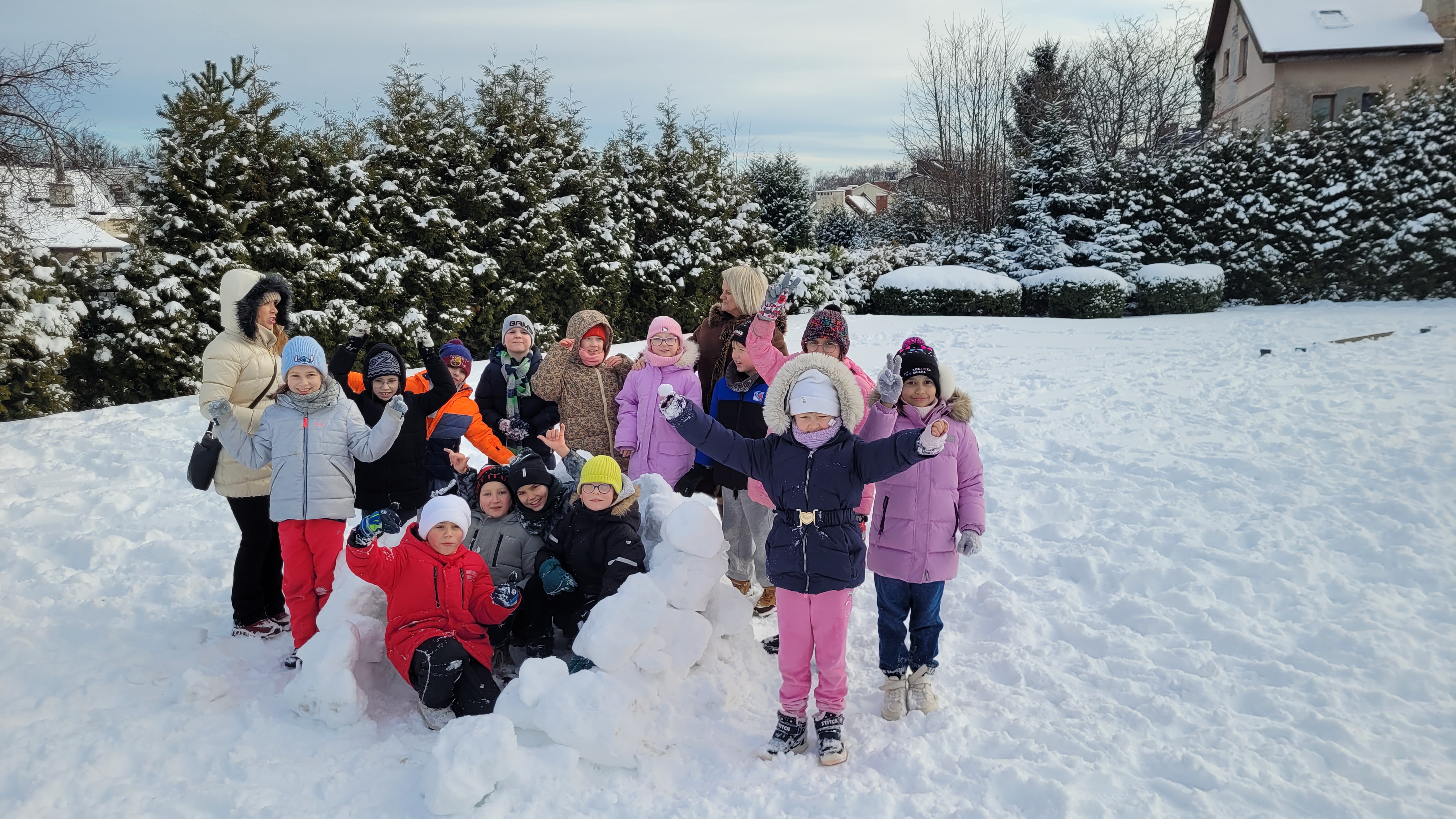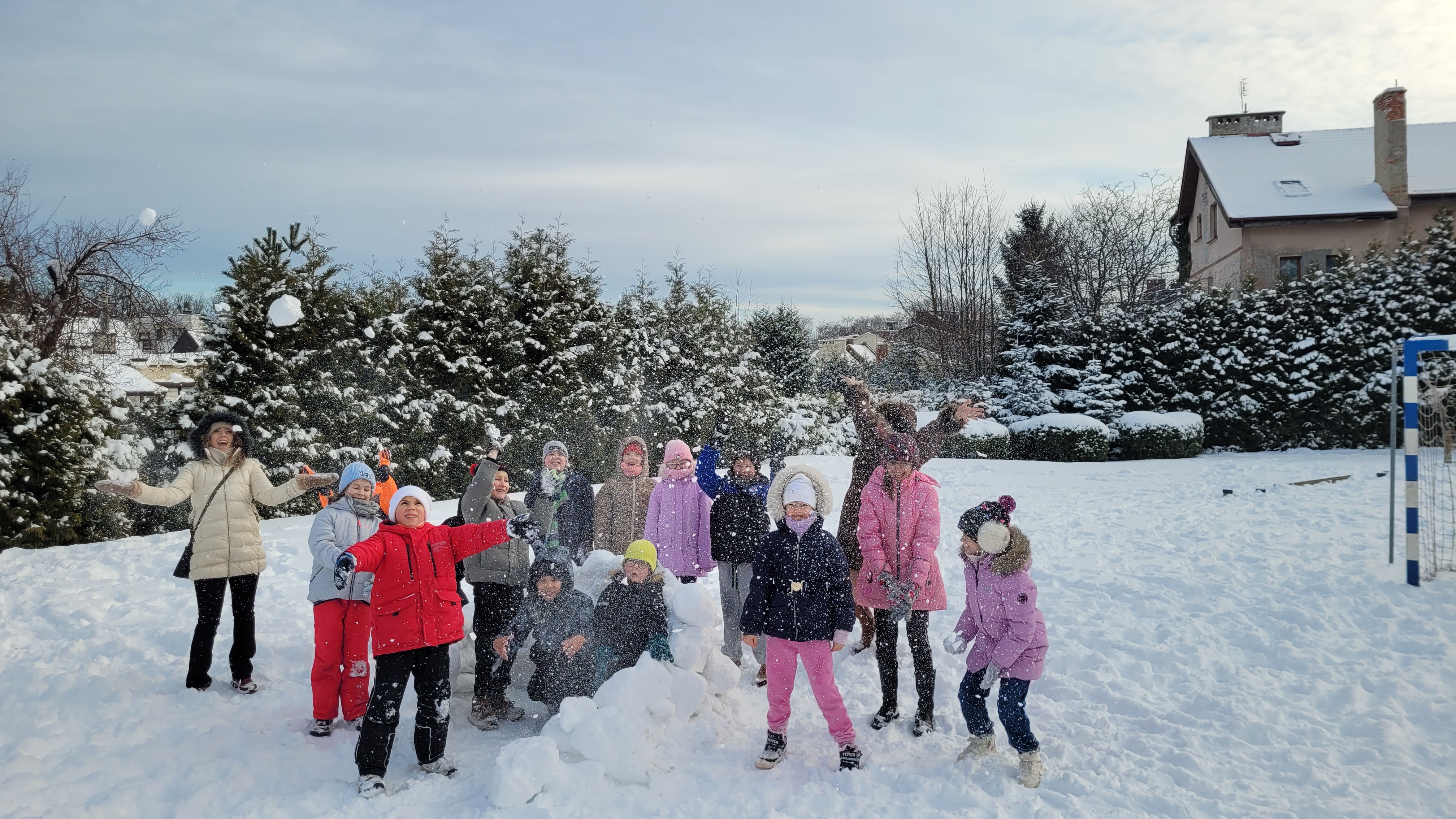 Dzisiejszy poranek w SP 34 wyglądał jak wyjęty z zimowej pocztówki – śnieg skrzypiał pod butami, słońce świeciło jak w bajce, a uczniowie… no cóż, korzystali z zimy na całego! ⛄️